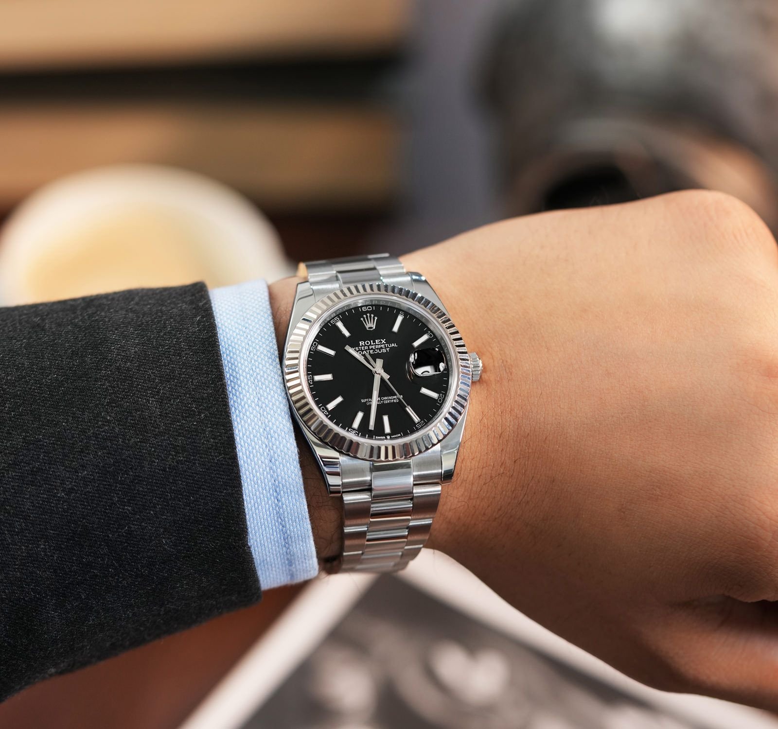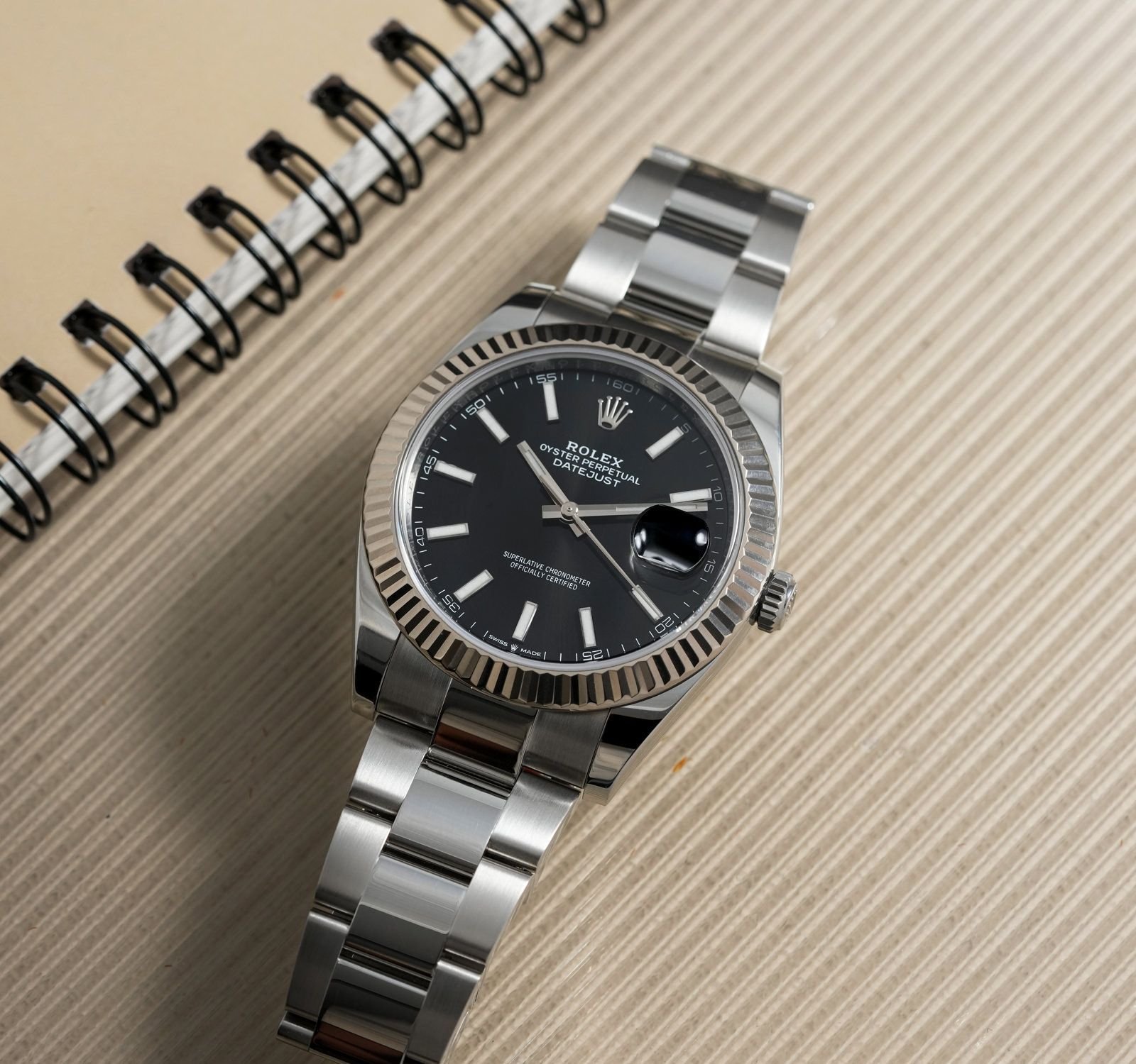 ساعة رولكس Rolex للرجال ميرور اوريجنال موديل Datejust 126334-0017 لون أسود و استيك معدن ستانلس لون فضي.