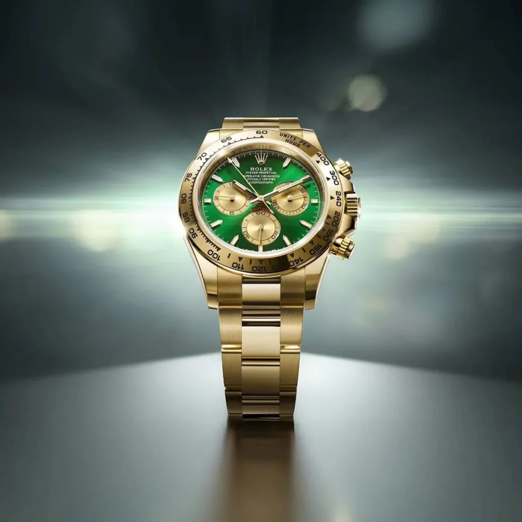 ساعة رولكس Rolex للرجال (ميرور اوريجنال) موديل Daytona 126508-0008 لون أخضر و استيك معدن ستانلس لون ذهبي.