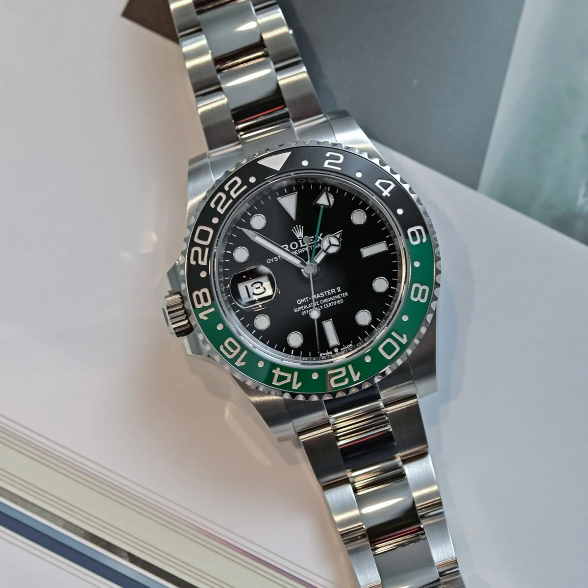 ساعة رولكس Rolex للرجال والنساء (ميرور اوريجنال) موديل GMT-Master 126720VTNR-0001 لون اسود و استيك معدن ستانلس لون فضي.