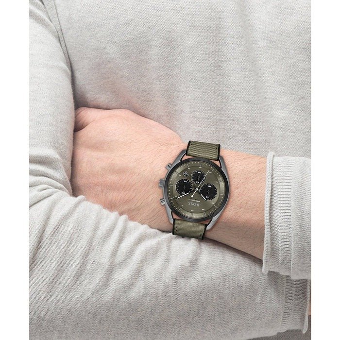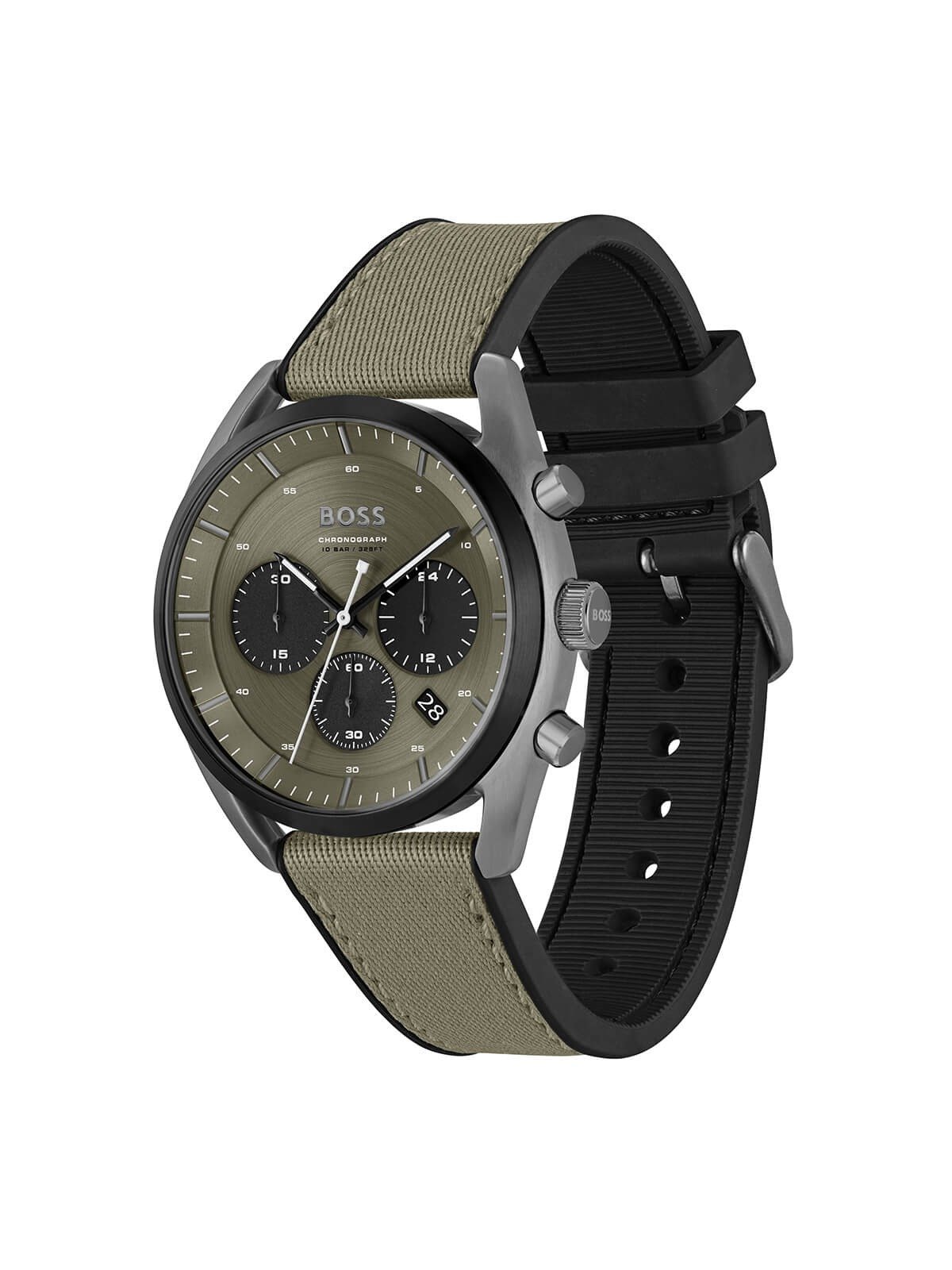 ساعة هوغو بوس Hugo Boss للرجال (أصلية) موديل (توب) 1514092 TOP لون أخضر غامق ( زيتي ) و استيك سيليكون مطاط * نسيج لون أخضر غامق ( زيتي ).