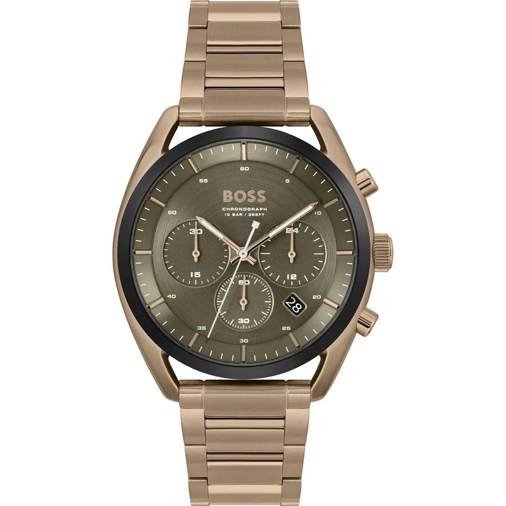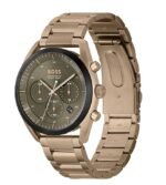 ساعة هوغو بوس Hugo Boss للرجال (أصلية) موديل 1514094 لون أخضر غامق (زيتوني) و استيك معدن ستانلس لون روز جولد.