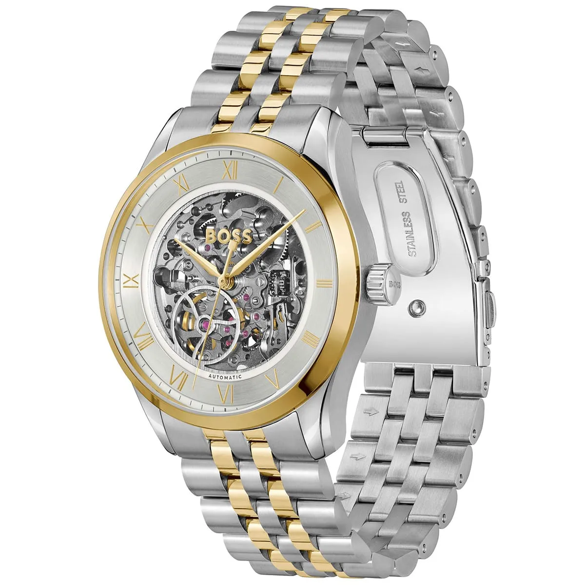 ساعة هوجو بوس Hugo Boss أصليه للرجال موديل 1514237 لون فضي و استيك معدن ستانلس ستيل لون فضي*ذهبي.
