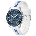 ساعة هوغو بوس Hugo Boss للرجال (أصلية) موديل 1514238 لون أزرق و استيك سيليكون مطاط لون أبيض.