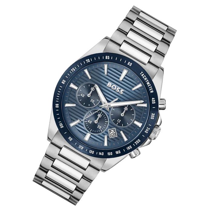 ساعة هوجو بوس Hugo Boss (أصلية) للرجال موديل 1514240 لون أزرق و استيك معدن لون فضي.