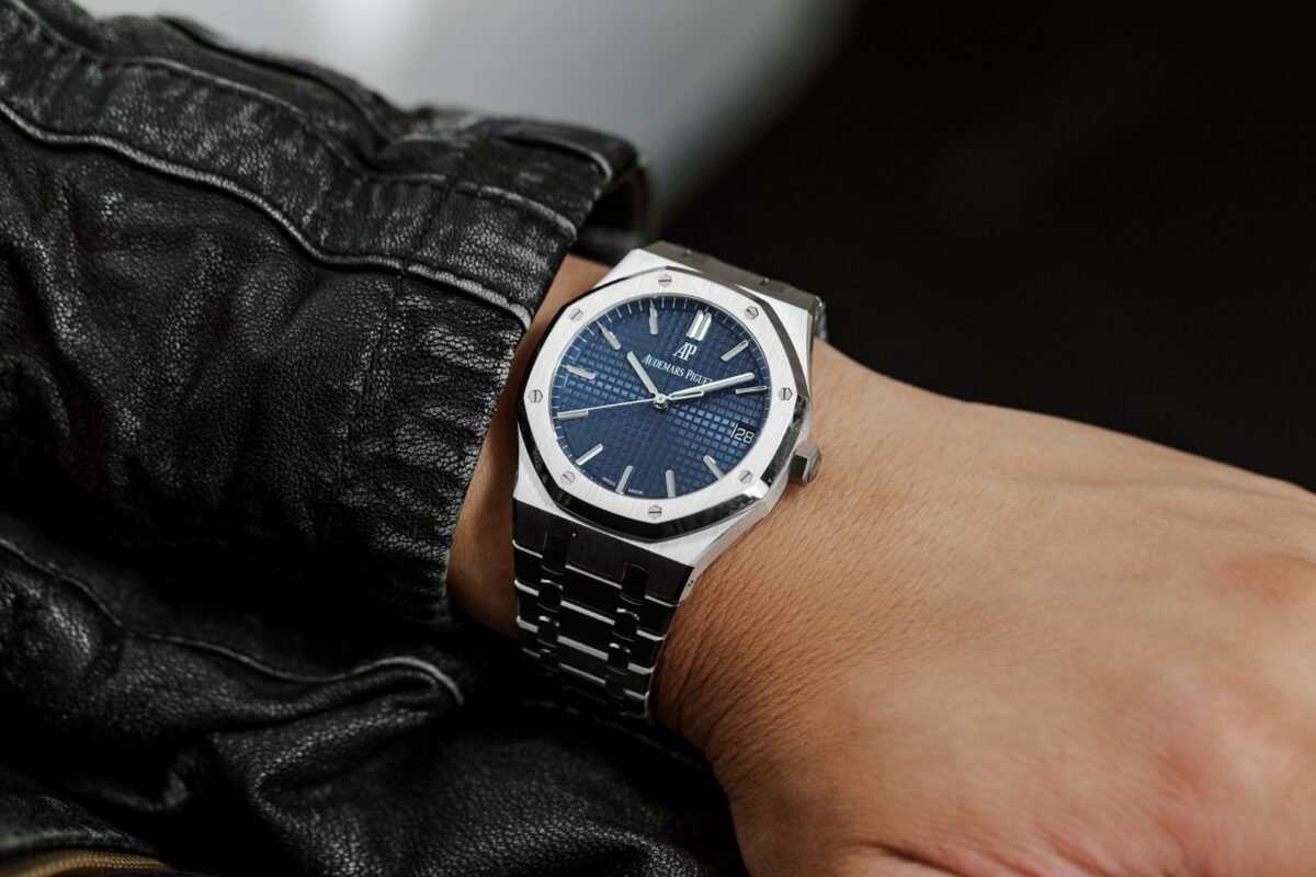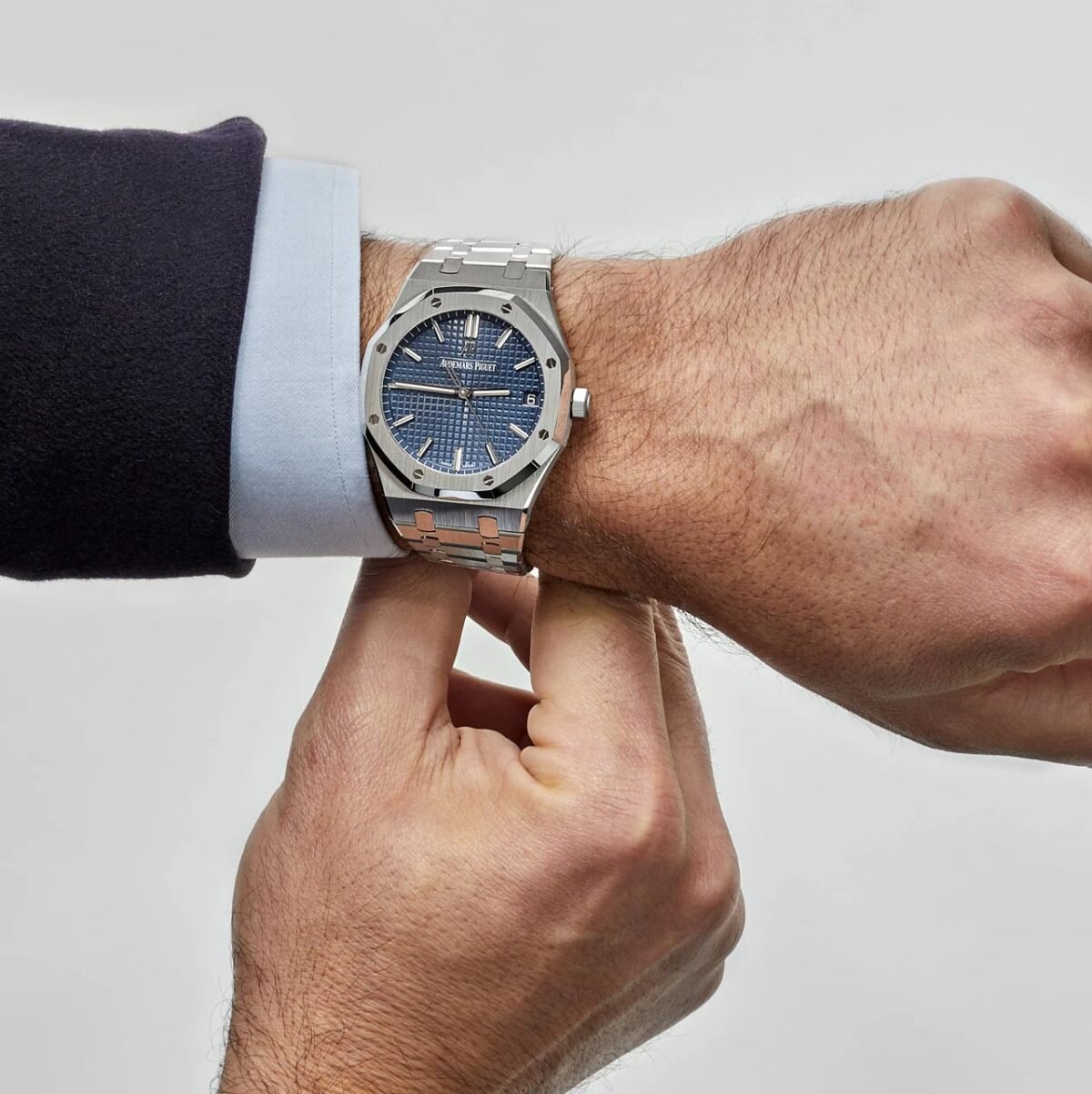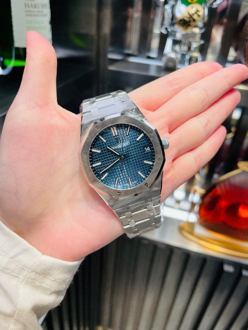 ساعة أوديمار بيغيه Audemars Piguet للرجال (ميرور اوريجينال) موديل Royal Oak 15500ST.OO.1220ST.01 لون أزرق و استيك معدن ستانلس لون فضي.