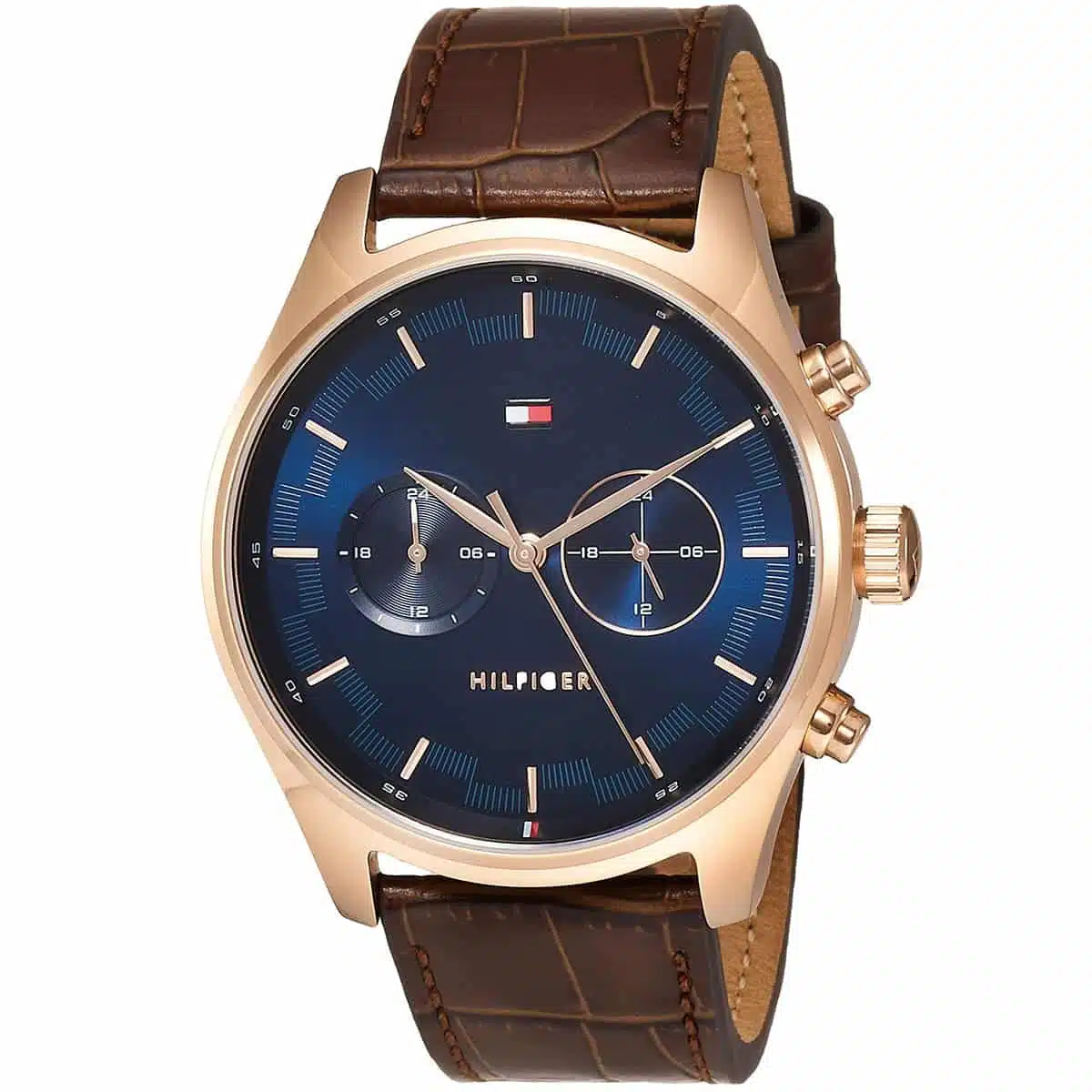 ساعة تومي هيلفيغر Tommy Hilfiger للرجال أصلية موديل 1710423 Sawyer لون أزرق و استيك جلد طبيعي لون بني.