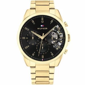 ساعة تومي هيلفيغر Tommy Hilfiger للرجال أصلية موديل (بيكر) 1710447 Baker لون اسود و استيك معدن ستانلس لون ذهبي.