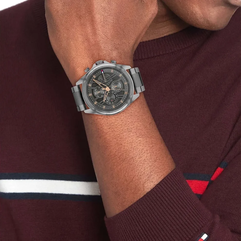 ساعة تومي هيلفيغر Tommy Hilfiger للرجال أصلية موديل 1710657 Jax لون رمادي و استيك معدن ستانلس ستيل لون رمادي.