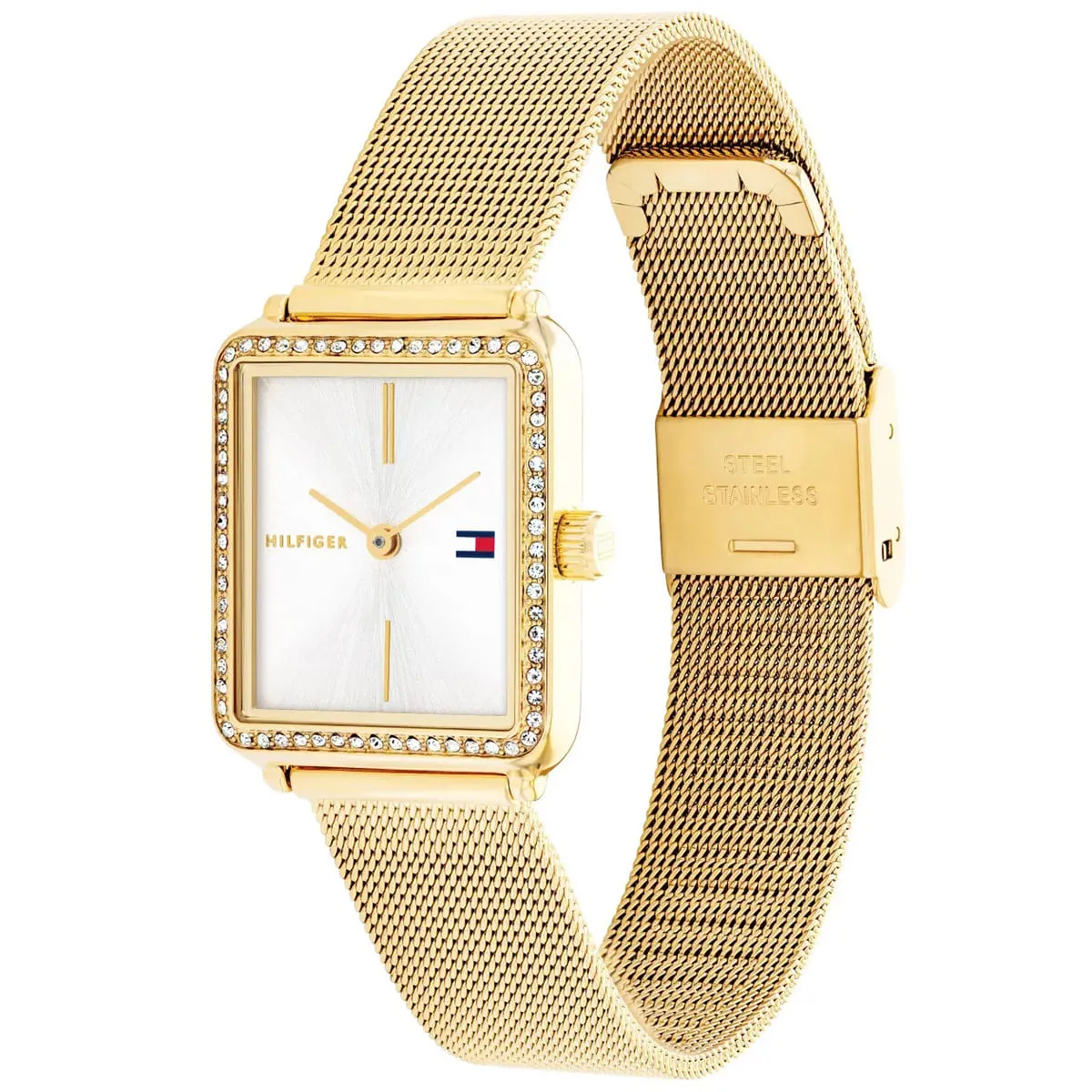 ساعة تومي هيلفيغر Tommy Hilfiger للنساء أصلية موديل 1782829 لون فضي و استيك معدن ستانلس ستيل لون ذهبي.
