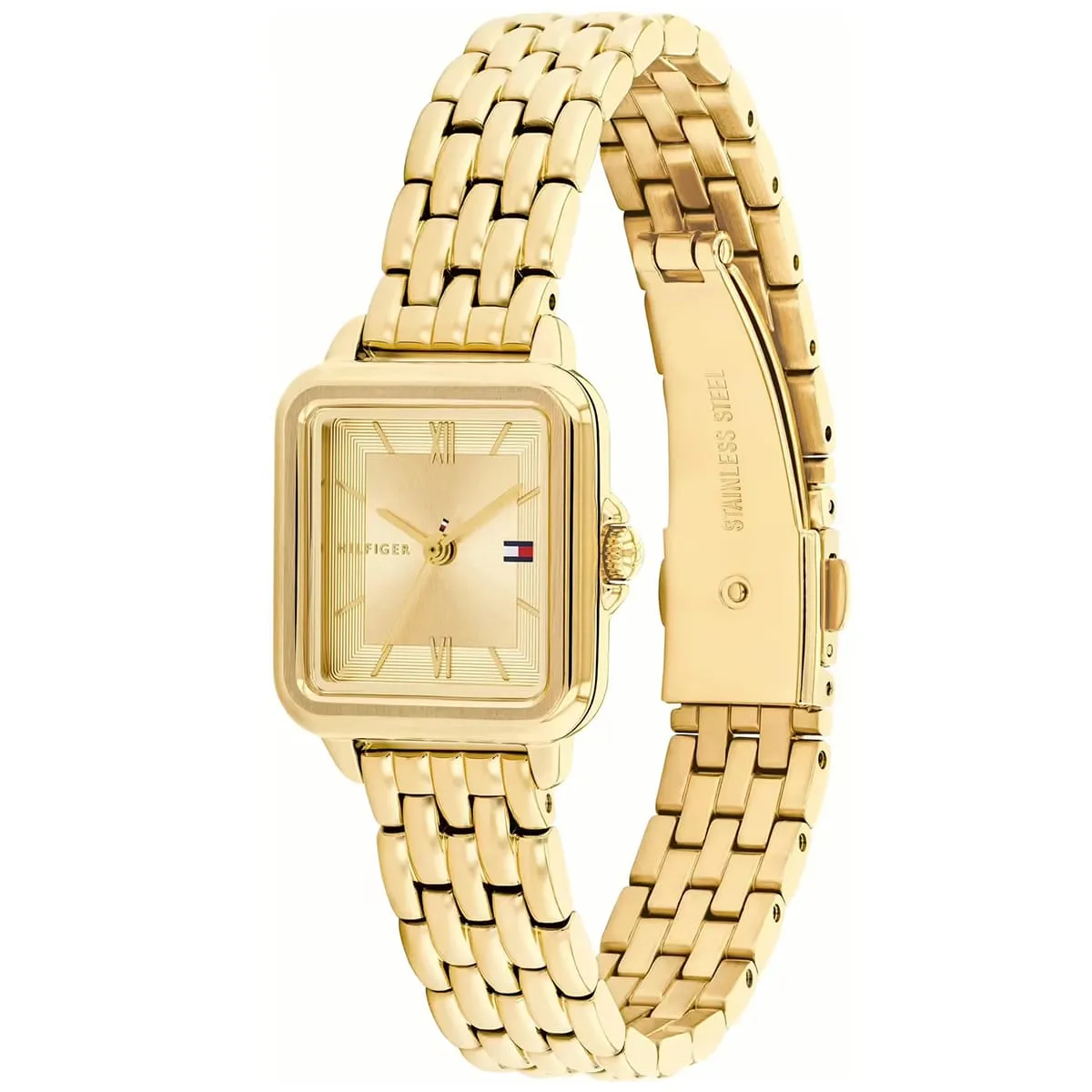 ساعة تومي هيلفيغر Tommy Hilfiger للنساء أصلية موديل 1782832 لون ذهبي و استيك معدن ستانلس ستيل لون ذهبي.