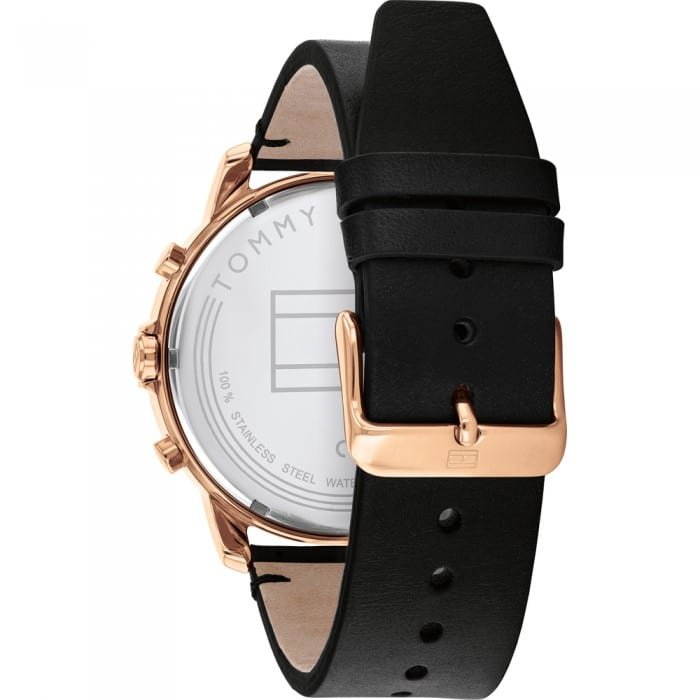 ساعة تومي هيلفيغر للرجال اصلية موديل (كوير) Cuir 1791798 لون اسود واستيك جلد طبيعي لون اسود