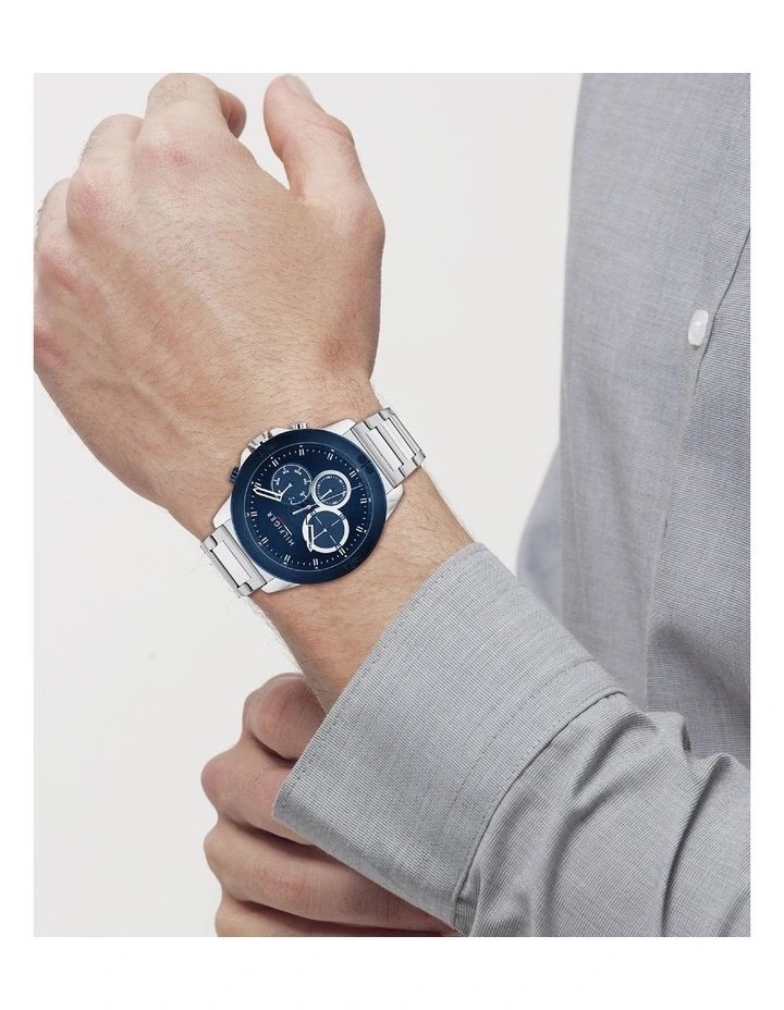 ساعة تومي هيلفيغر للرجال أصلية موديل (هاري) Harley 1791932 بلون ازرق و استيك ستنلس ستيل بلون فضي