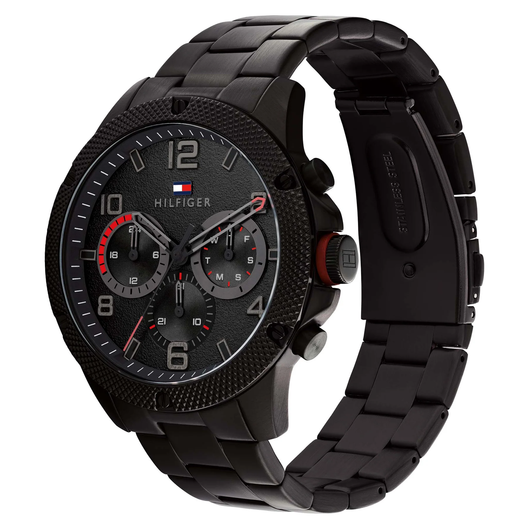 ساعة تومي هيلفيغر للرجال أصلية موديل 1792030 لون اسود و استيك معدن ستانلس لون اسود.