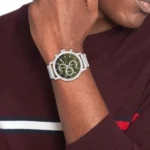 ساعة تومي هيلفيغر Tommy Hilfiger للرجال أصلية موديل 1792180 Rocky لون أخضر و استيك معدن ستانلس ستيل لون فضي.