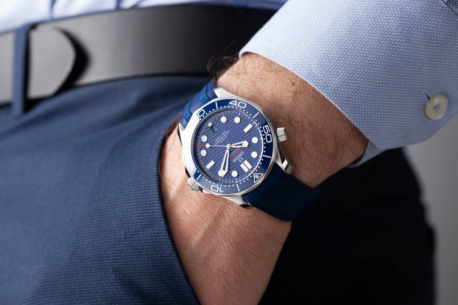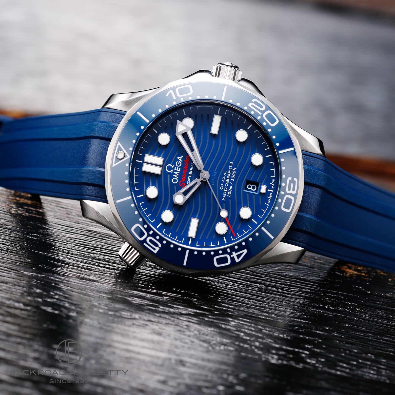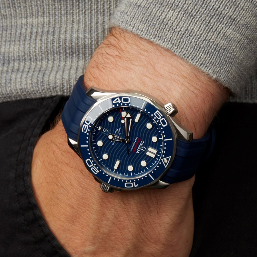 ساعة اوميجا للرجال ميرور اوريجينال موديل SEAMASTER DIVER 210.32.42.20.03.001 لون أزرق و استيك سيليكون مطاط لون أزرق.