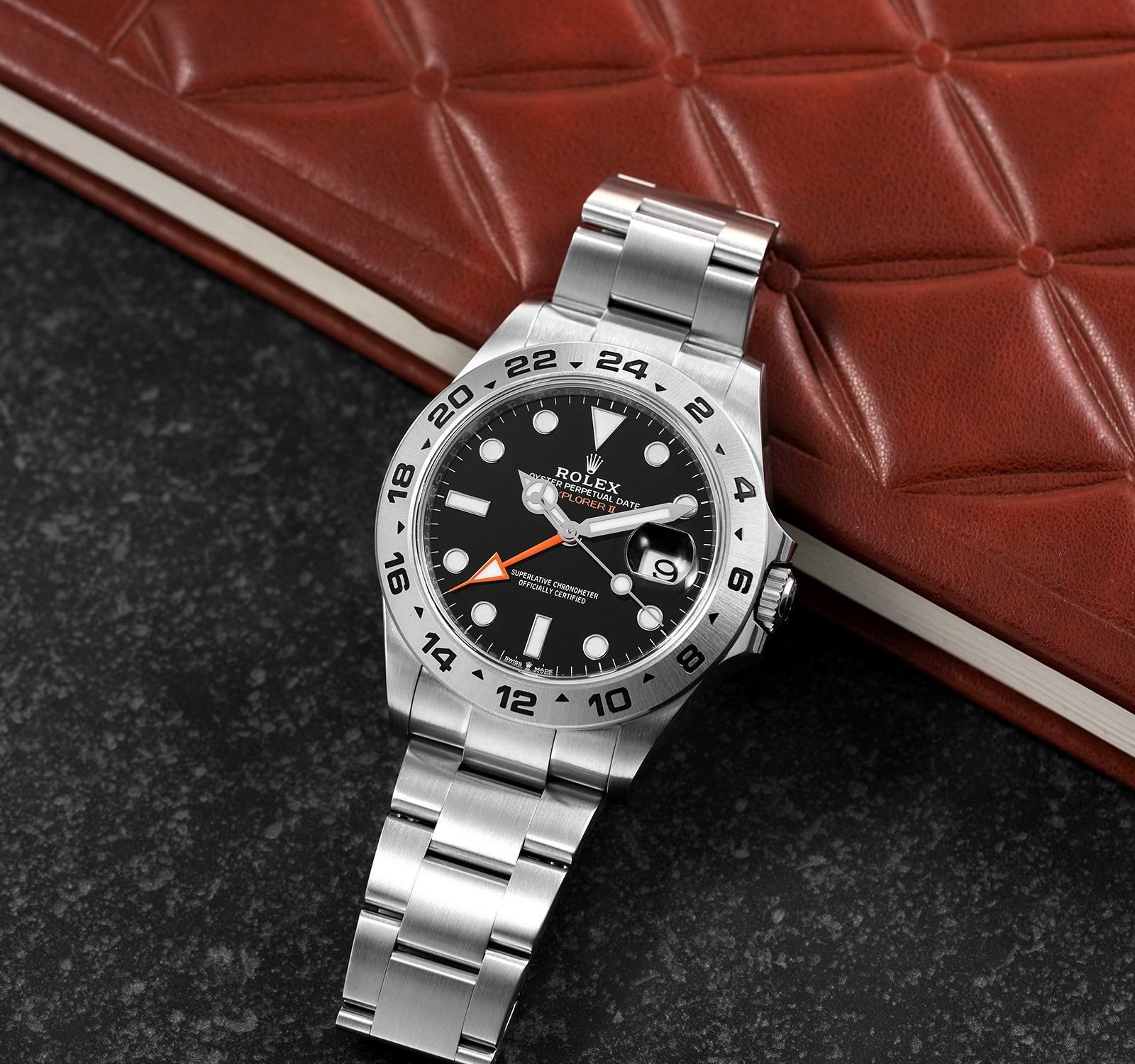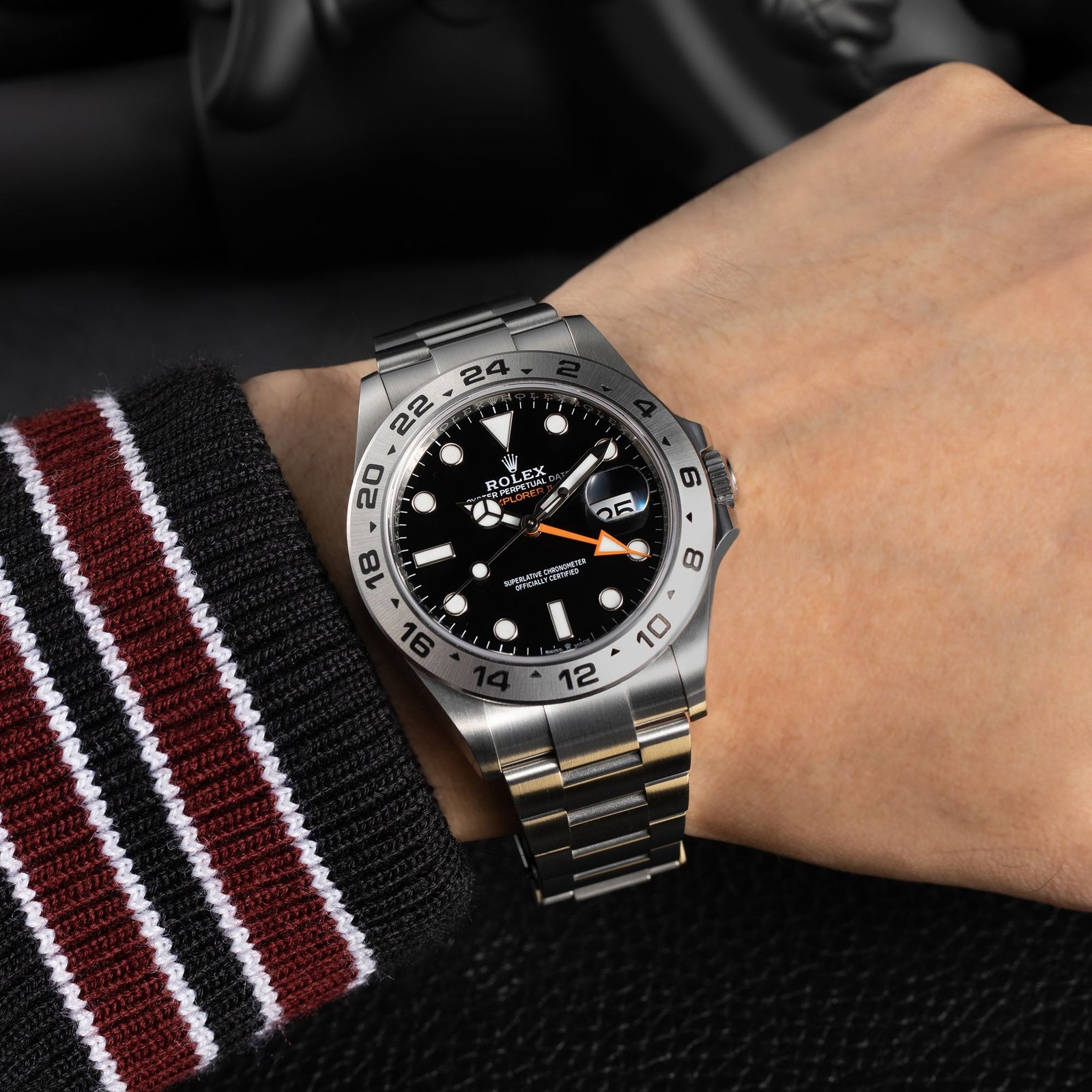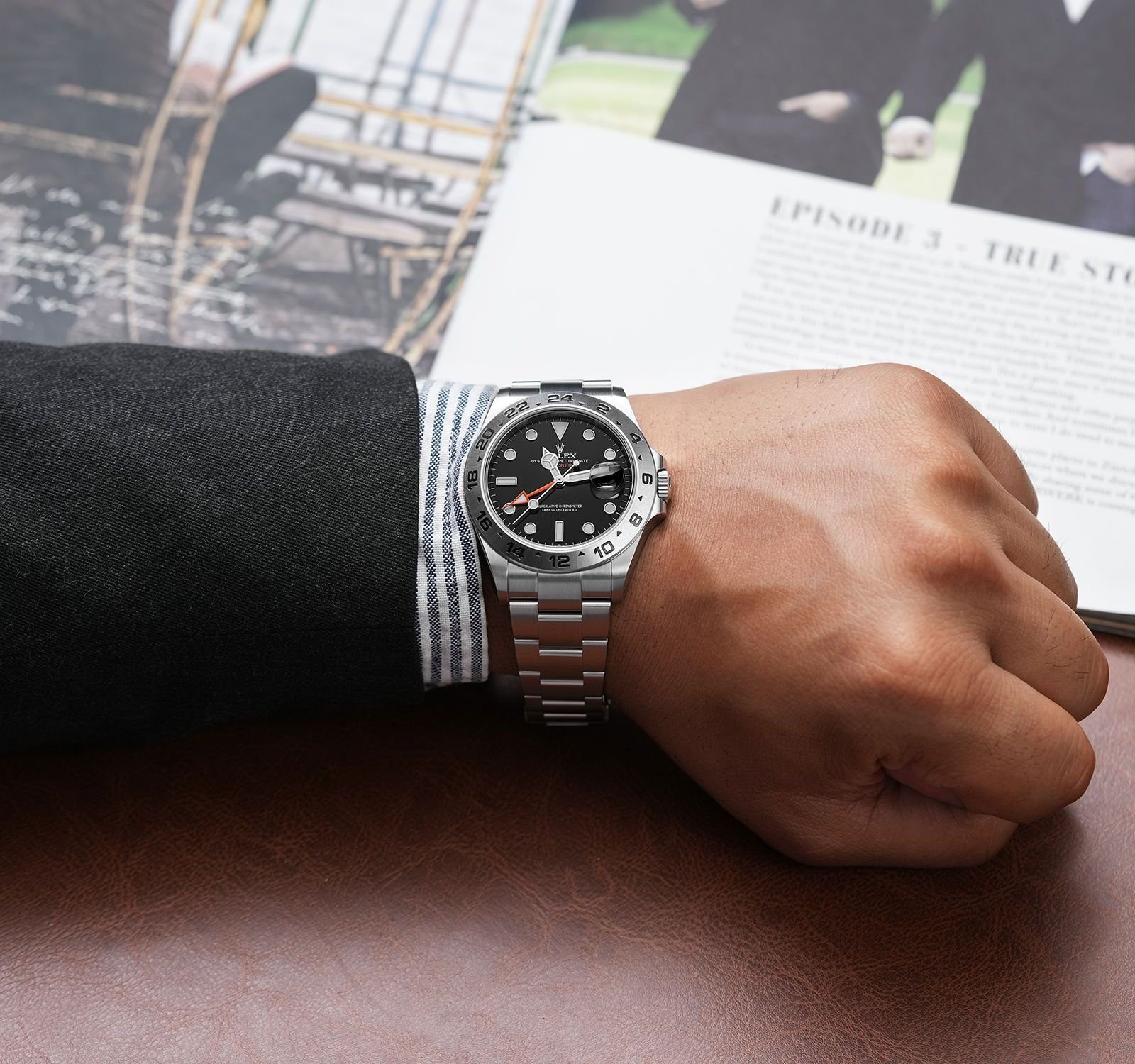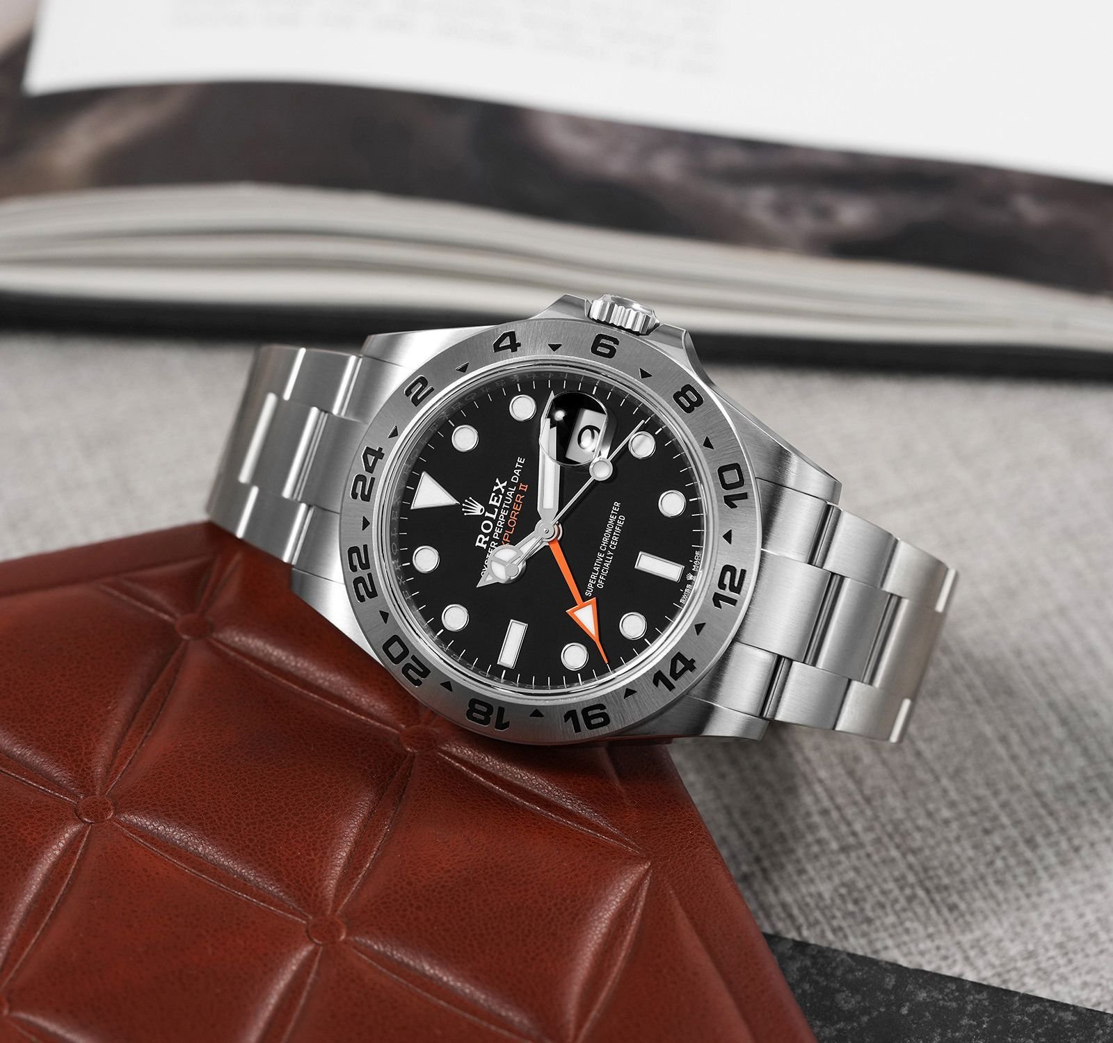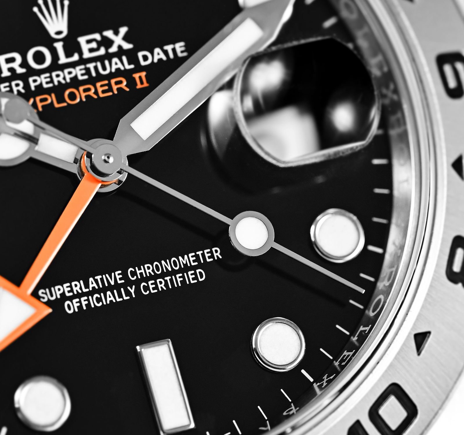 ساعة رولكس Rolex للرجال (ميرور اوريجينال) موديل Explorer II 226570-0002 لون اسود و استيك معدن ستانلس لون فضي.