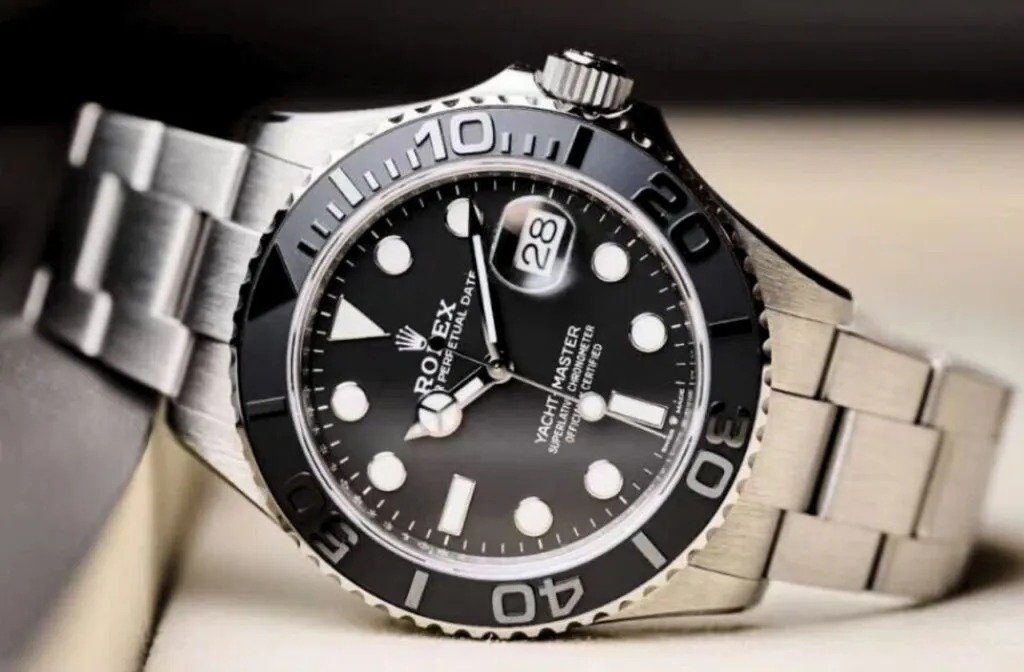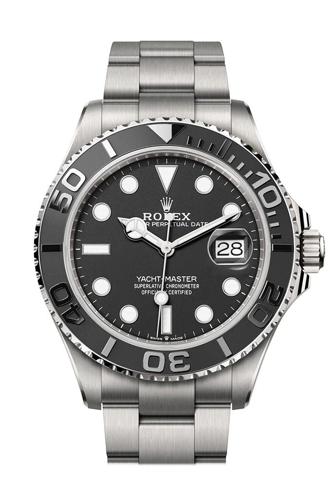 ساعة رولكس Rolex للرجال ميرور اوريجينال موديل Yacht-Master 226627-0001 لون اسود و استيك معدن ستانلس لون فضي.