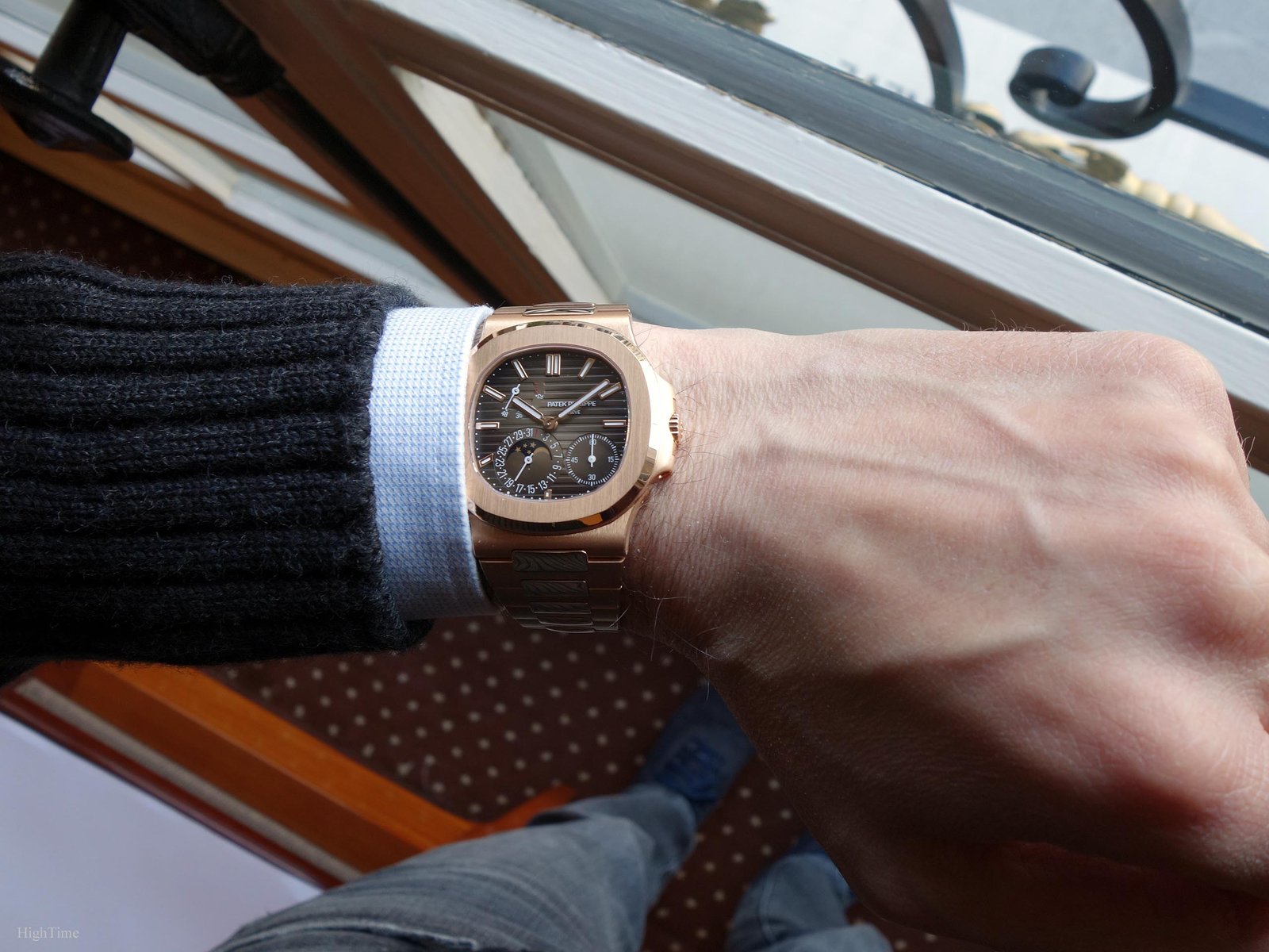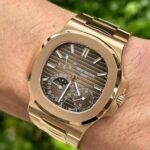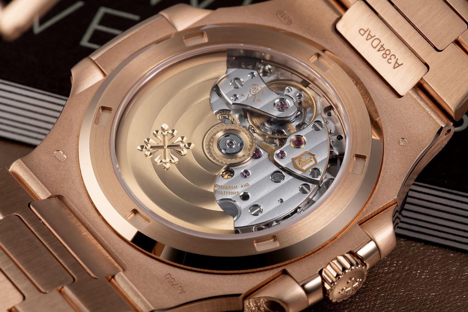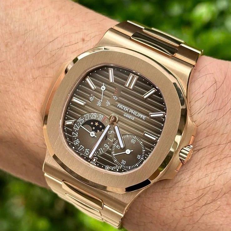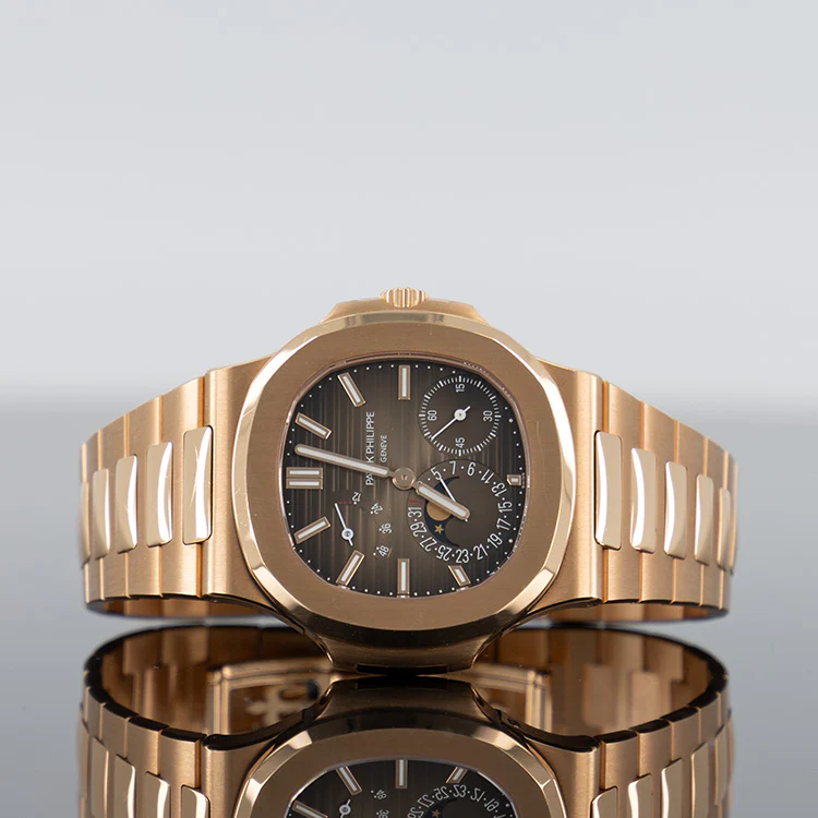 ر ساعة باتيك فيليب Patek Philippe للرجال (ميرور اوريجنال) موديل Nautilus 5712/1R-001 لون بني و استيك معدن ستانلس لون روز جولد.