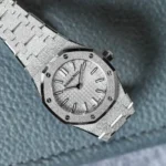 ساعة أوديمار بيغيه Audemars Piguet للنساء (ميرور اوريجينال) موديل Royal Oak 67630BC.GG.1312BC.01 لون فضي و استيك معدن ستانلس لون فضي.