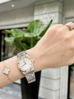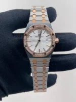 ساعة أوديمار بيغيه Audemars Piguet للنساء (ميرور اوريجينال) موديل Royal Oak 67651SR.ZZ.1261SR.01 لون فضي و استيك معدن ستانلس لون فضي * روز جولد.