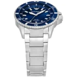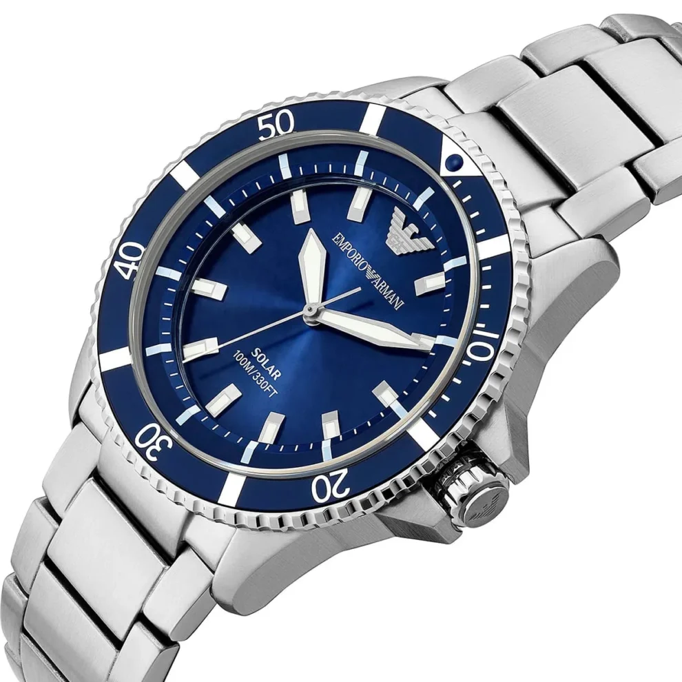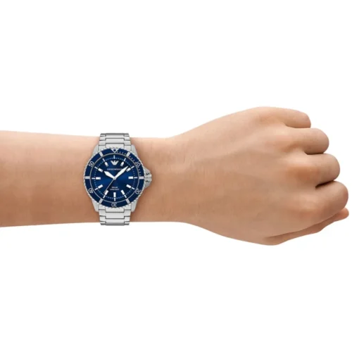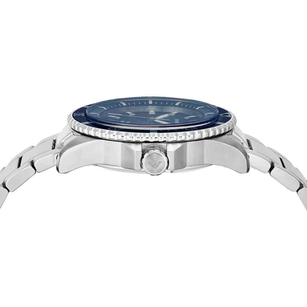 ساعة امبوريو ارماني Emporio Armani للرجال أصلية موديل World Explorer AR11697 لون أزرق و استيك معدن ستانلس لون فضي.