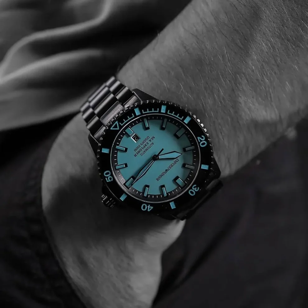 ساعة إمبوريو أرماني Emporio Armani للرجال أصلية موديل AR60084 لون أزرق و استيك معدن لون أسود.