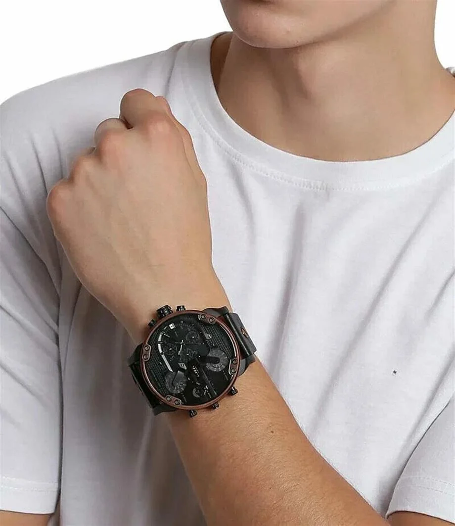 ساعة ديزل Diesel للرجال أصلية موديل Mr. Daddy 2.0 DZ7400 لون أسود واستيك جلد طبيعي لون أسود.