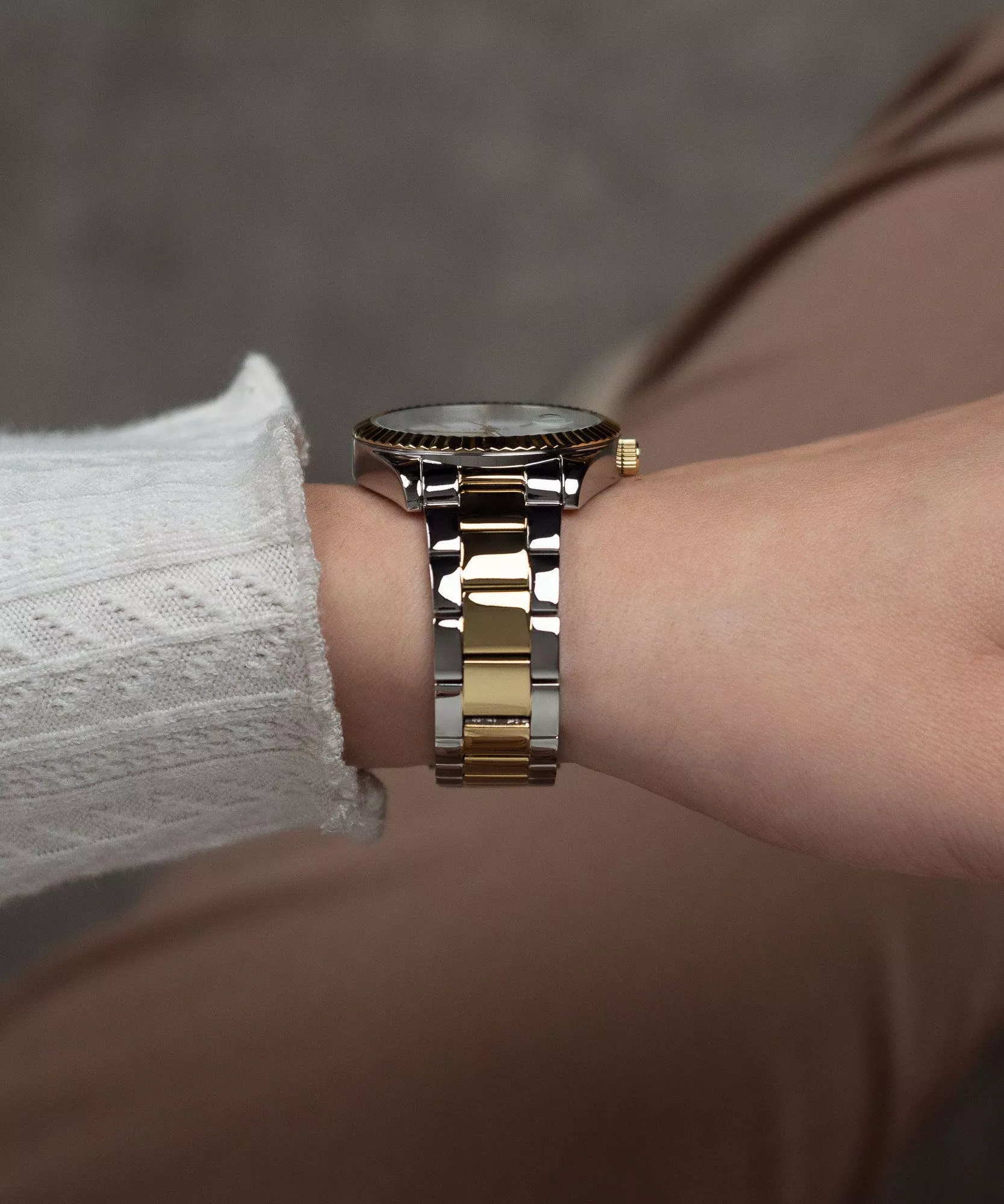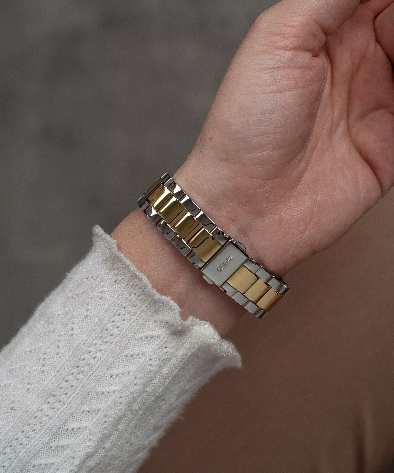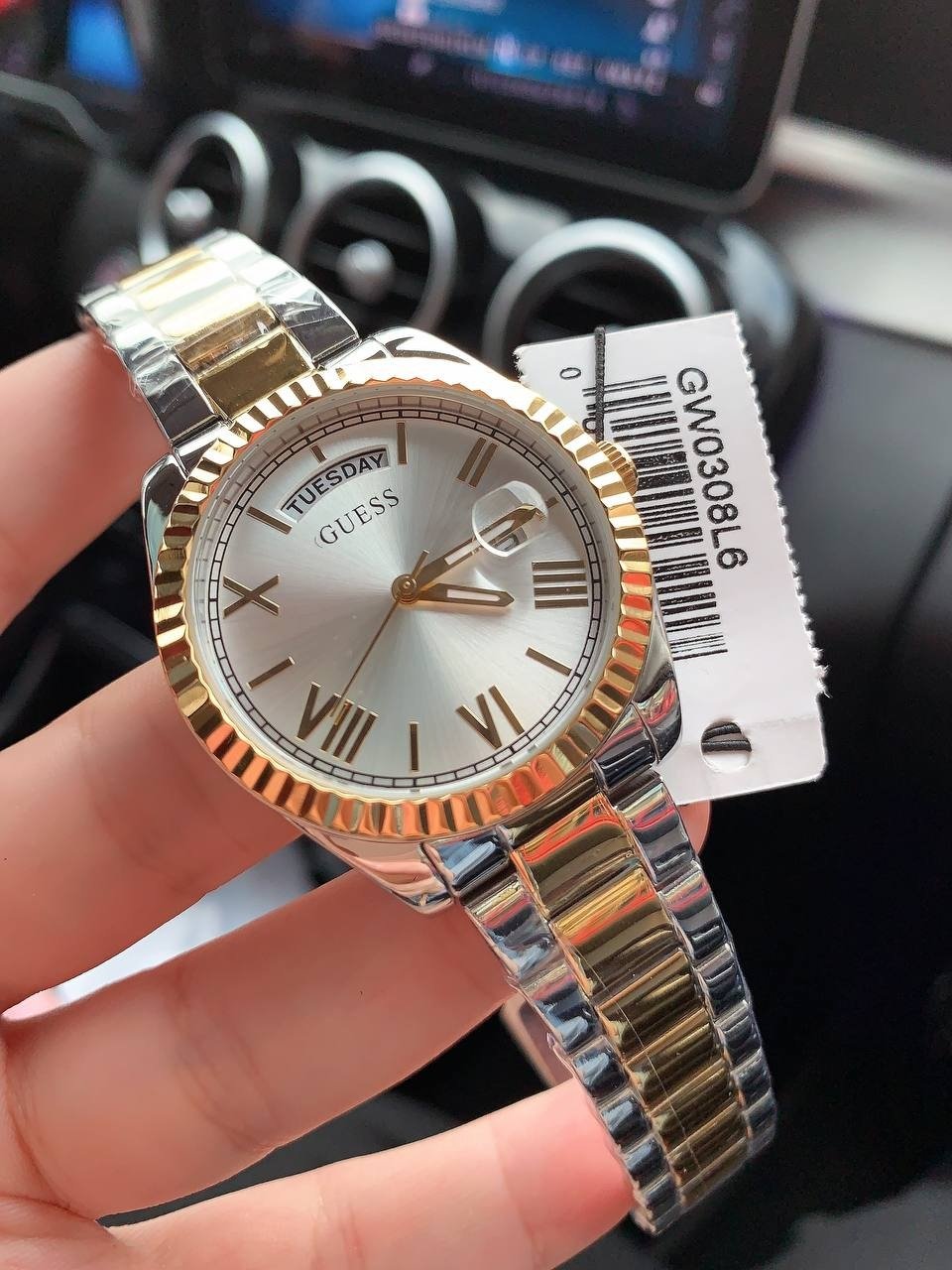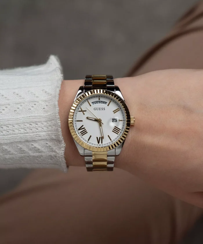 ساعة جيس Guess للنساء (أصلية) موديل GW0308L6 لون أبيض و استيك معدن ستانلس لون فضي * ذهبي.