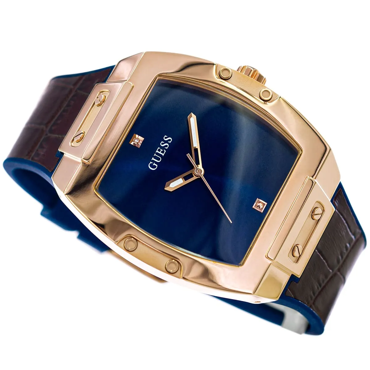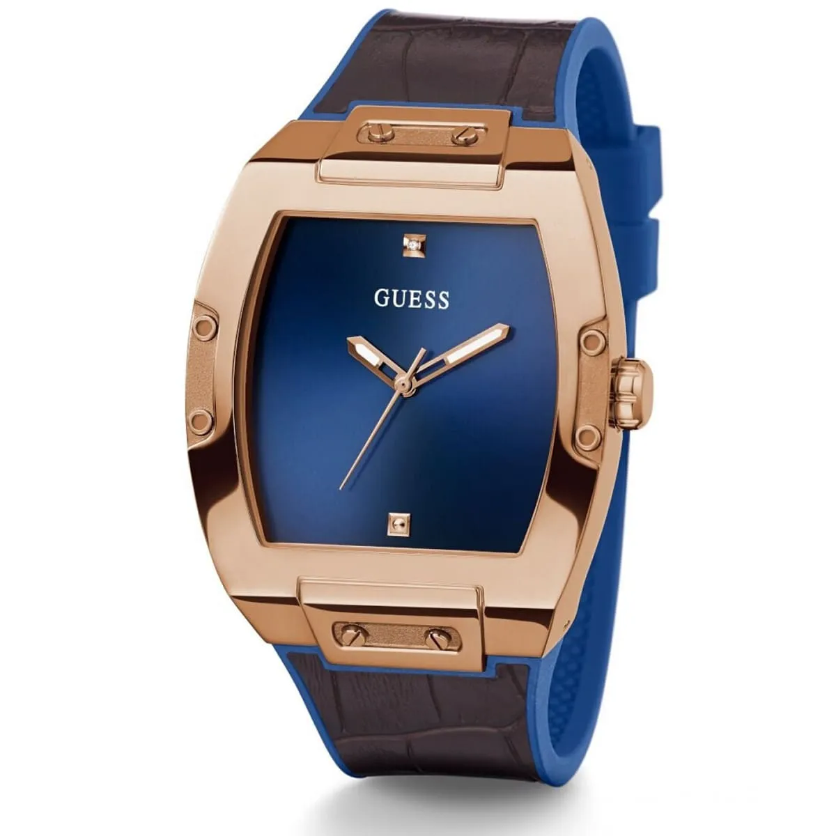 ساعة جيس Guess للرجال (أصلية) موديل GW0386G2 لون أزرق و استيك سيليكون مطاط * جلد طبيعي لون بني.