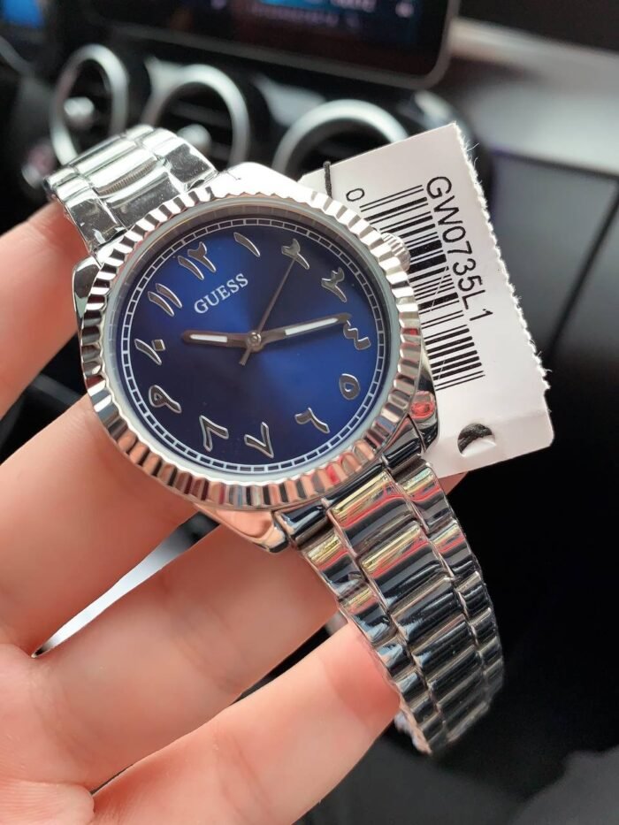 ساعة جيس Guess للنساء (أصلية) موديل GW0735L1 لون أزرق و استيك معدن ستانلس لون فضي.