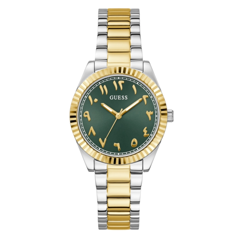 ساعة جيس Guess للنساء (أصلية) موديل GW0735L2 لون أخضر و استيك معدن ستانلس لون فضي * ذهبي.