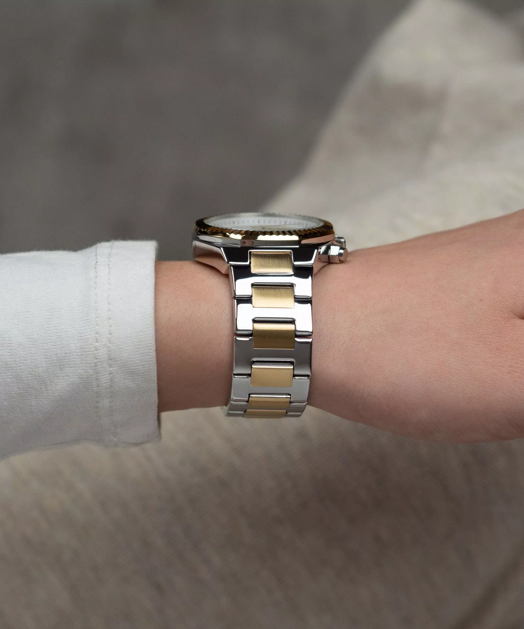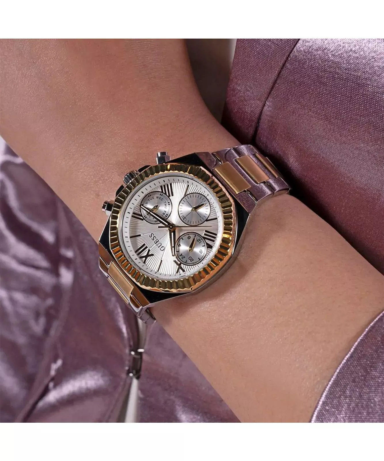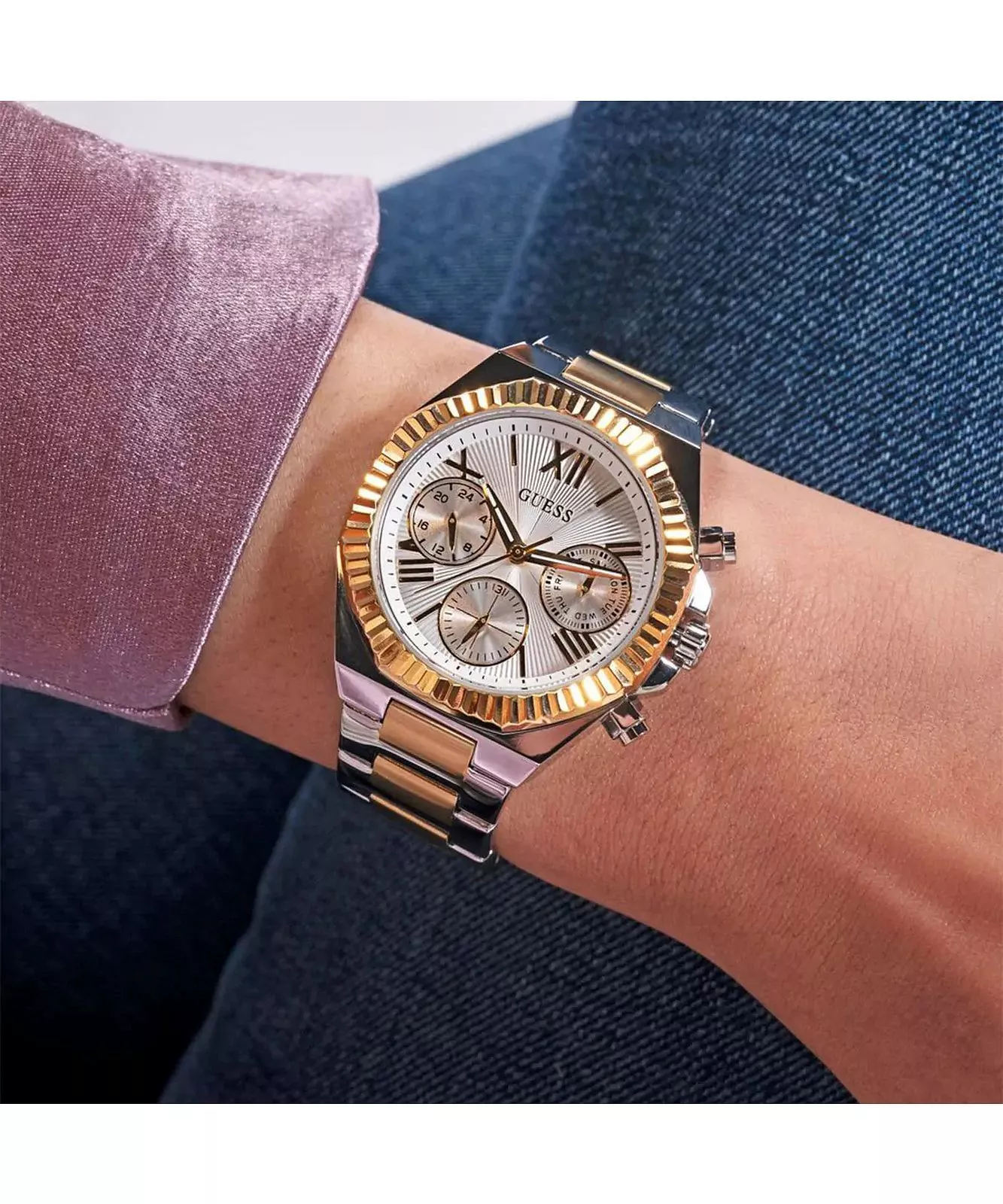 ساعة جيس Guess للنساء (أصلية) موديل GW0769L3 لون أبيض و استيك معدن ستانلس لون فضي * ذهبي.