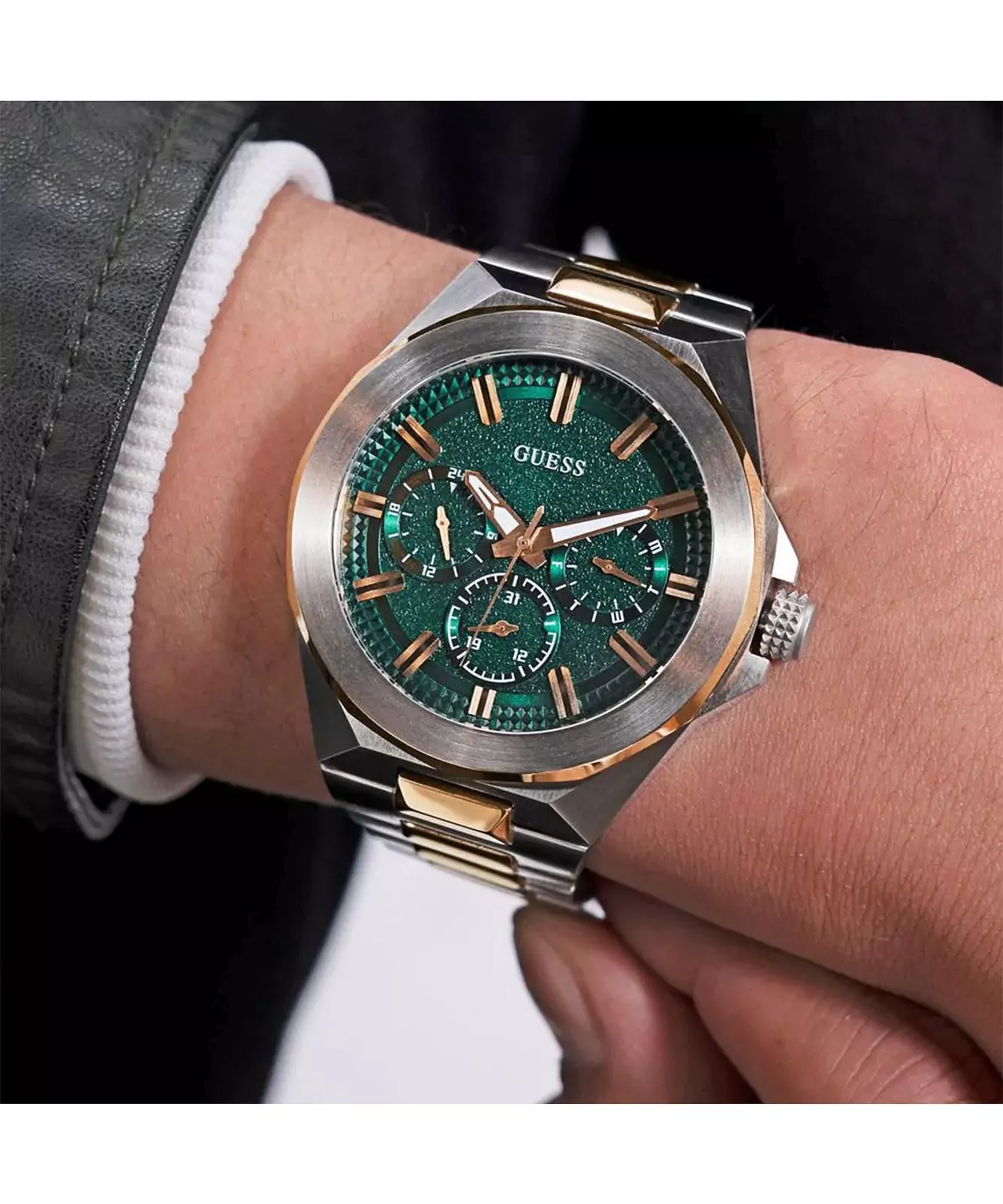 ساعة جيس Guess للرجال (أصلية) موديل GW0798G3 لون أخضر و استيك معدن ستانلس لون فضي * ذهبي.