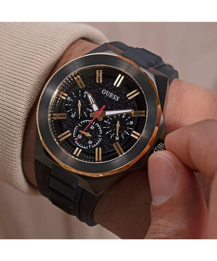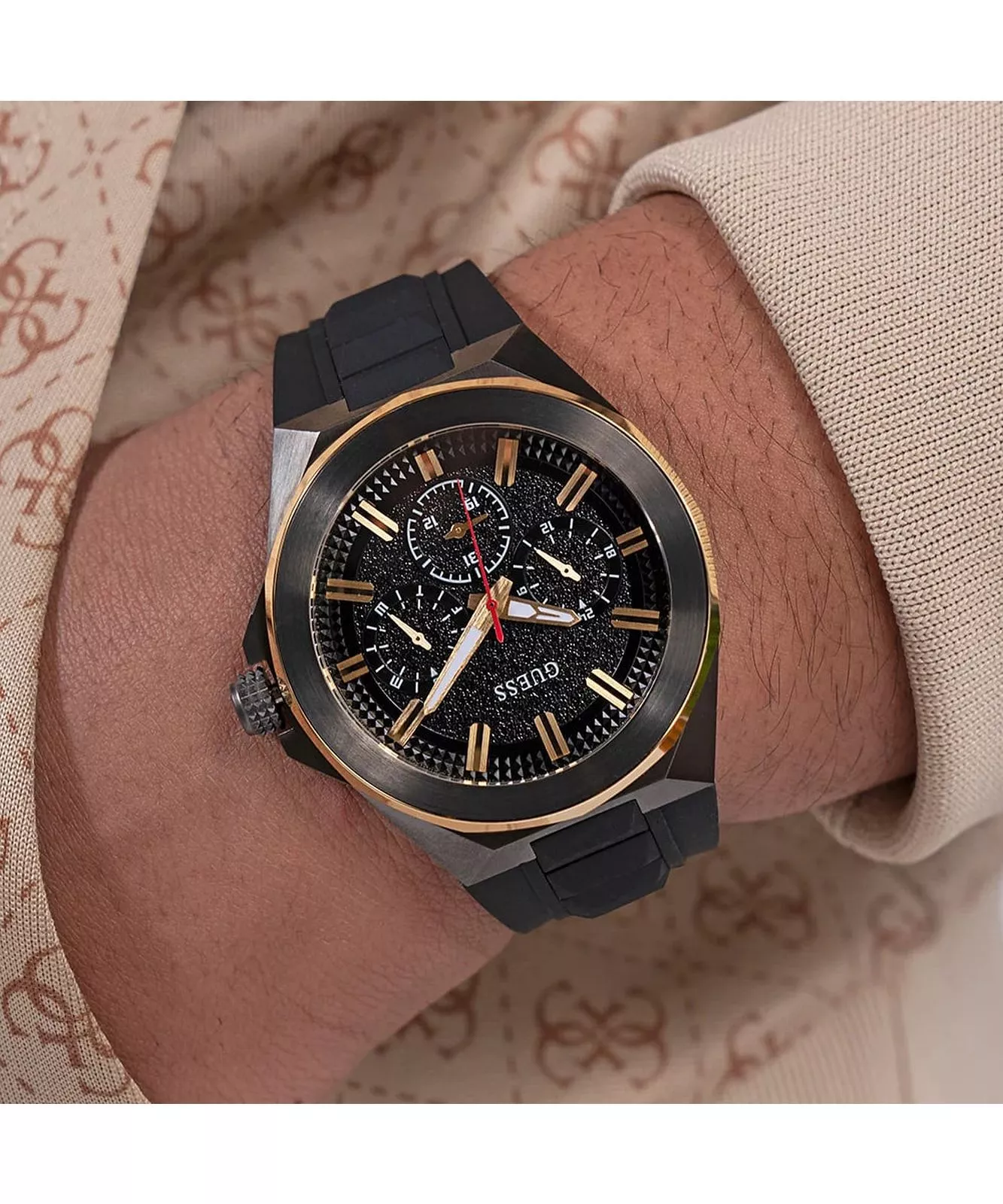 ساعة جيس Guess للرجال (أصلية) موديل GW0799G1 لون أسود و استيك سيليكون مطاط لون أسود.
