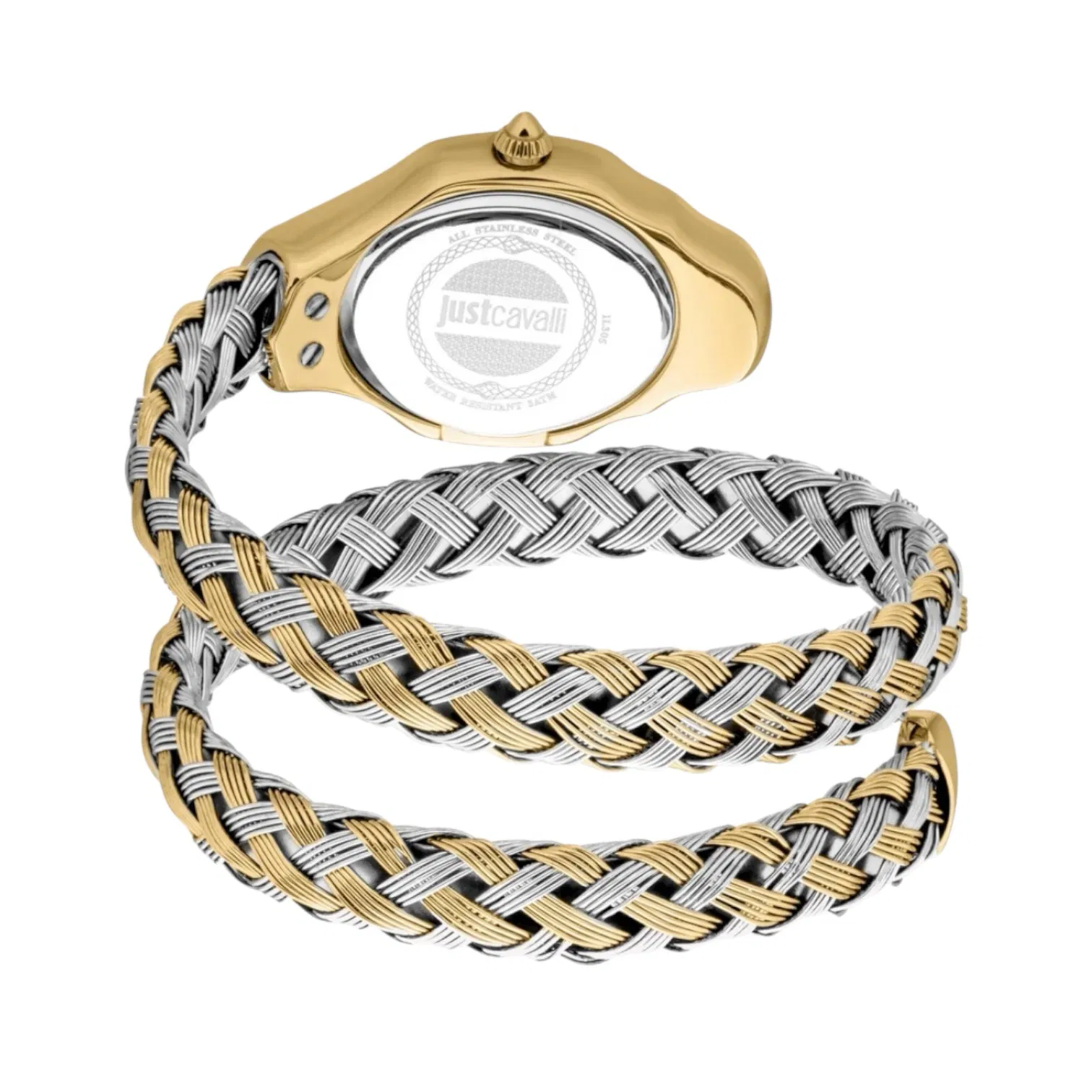 ساعة جاست كفالي Just Cavalli للنساء أصلية موديل JC1L305M0055 لون أبيض و استيك معدن ستانلس لون فضي * ذهبي.