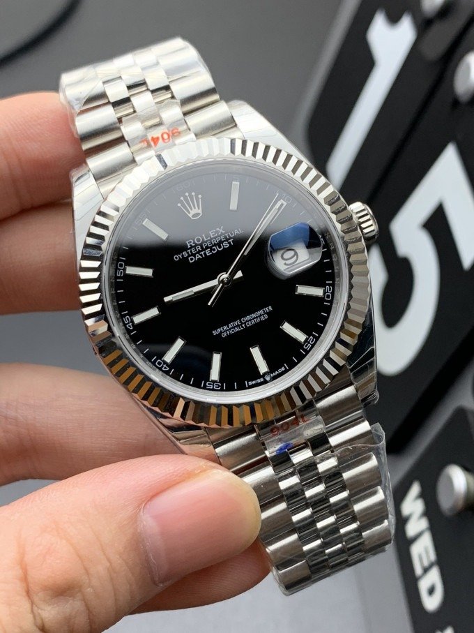 ساعة رولكس Rolex للرجال ميرور اوريجنال موديل Date-just m126334-0014 لون أسود و استيك معدن ستانلس لون فضي.