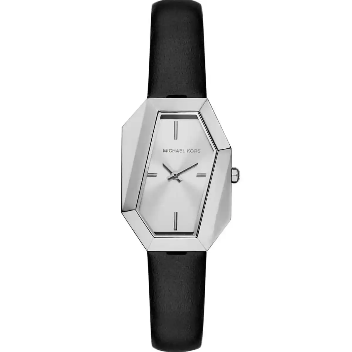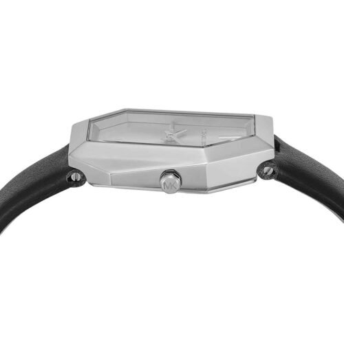 ساعة مايكل كورس Michael Kors للنساء أصلية موديل MK4881 لون فضي و استيك جلد طبيعي لون أسود.