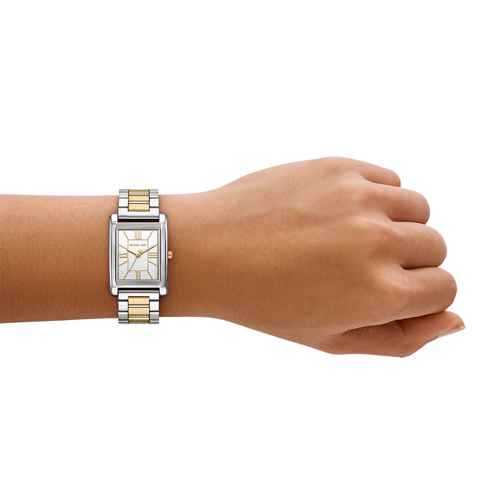 ساعة مايكل كورس Michael Kors للنساء أصلية موديل MK4967 لون أبيض و استيك معدن ستانلس لون فضي * ذهبي.