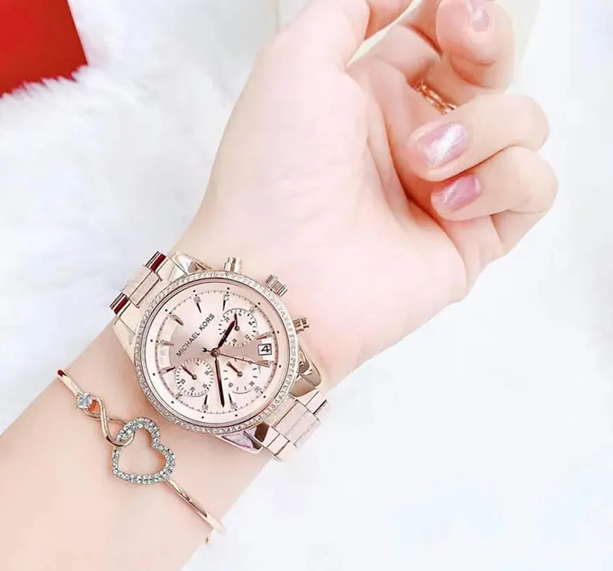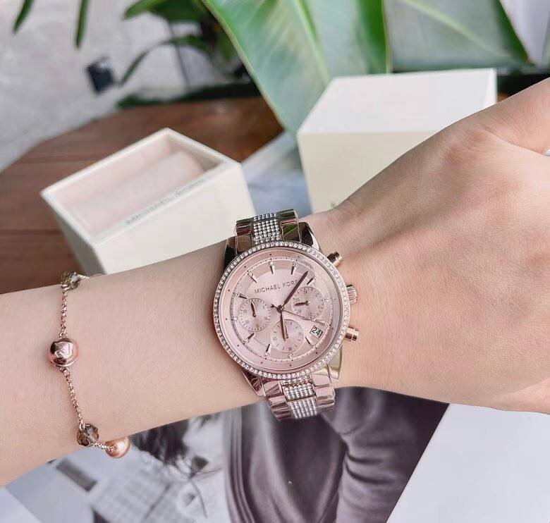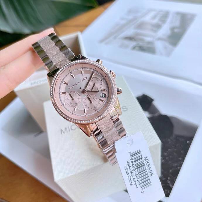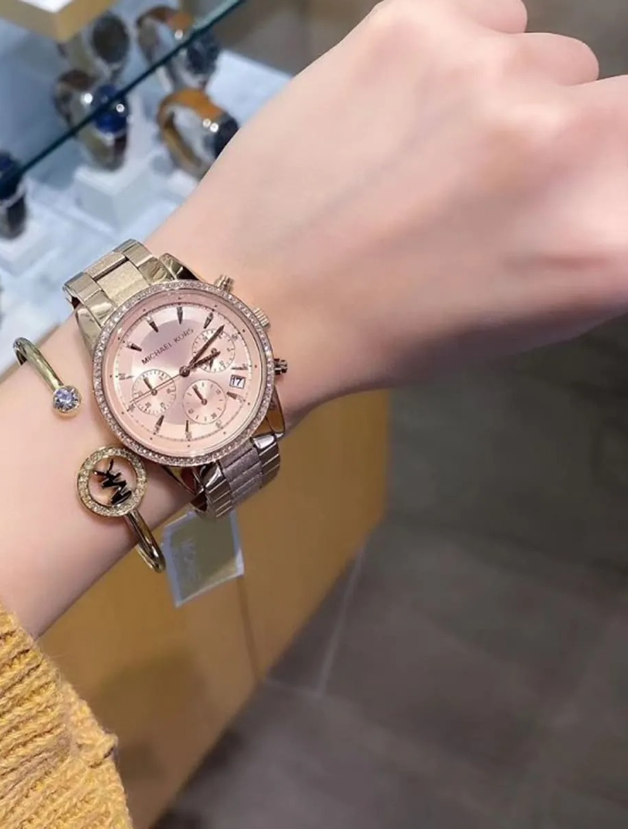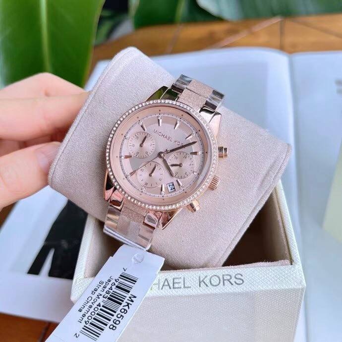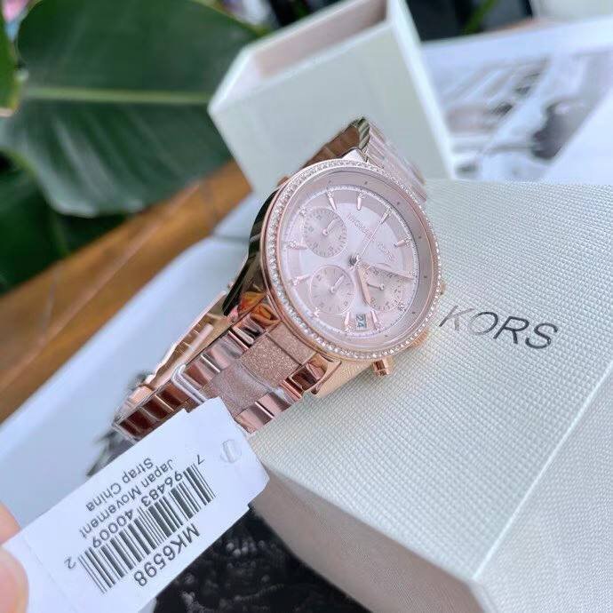 ساعة مايكل كورس Michael Kors للنساء أصلية موديل ( ريتز ) MK6598 Ritz لون روز جولد و استيك معدن ستانلس لون روز جولد.