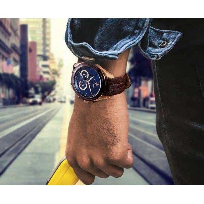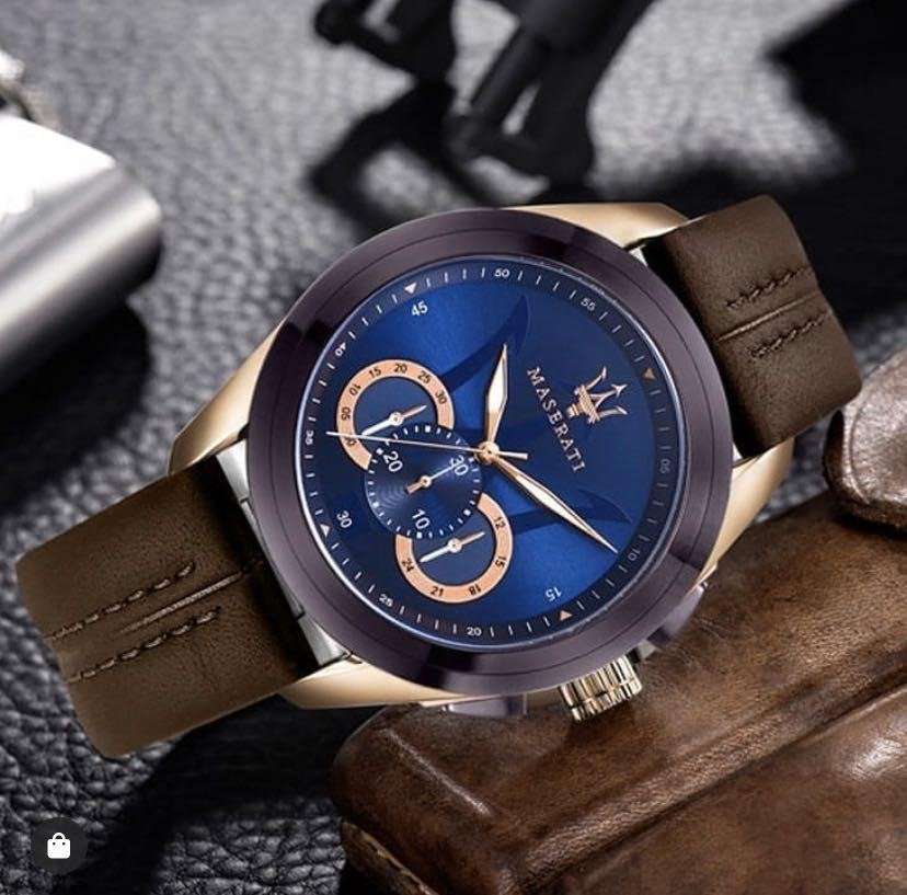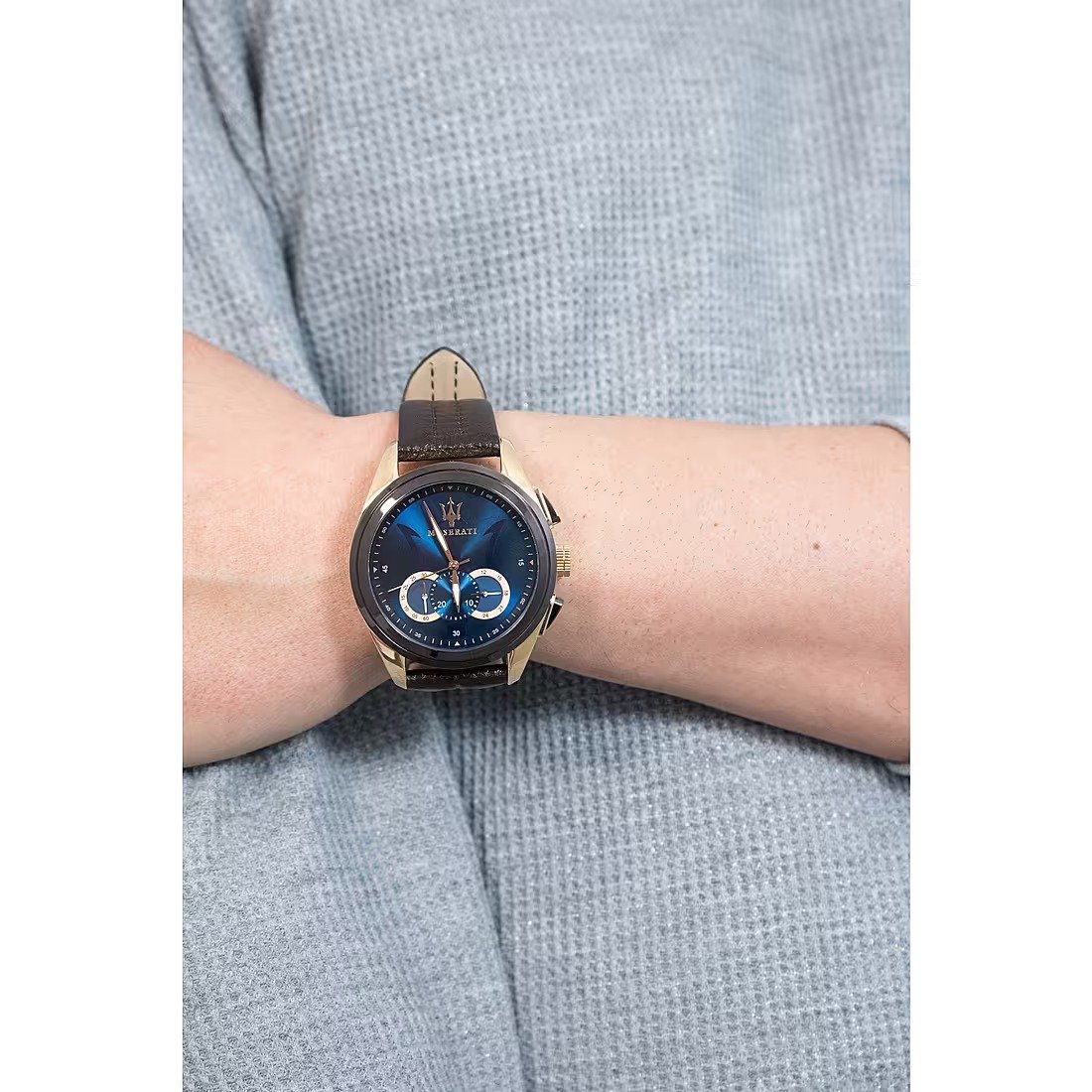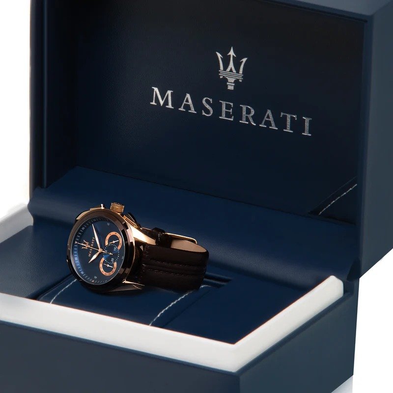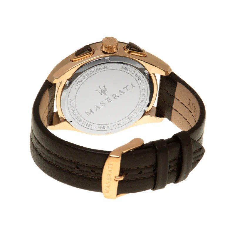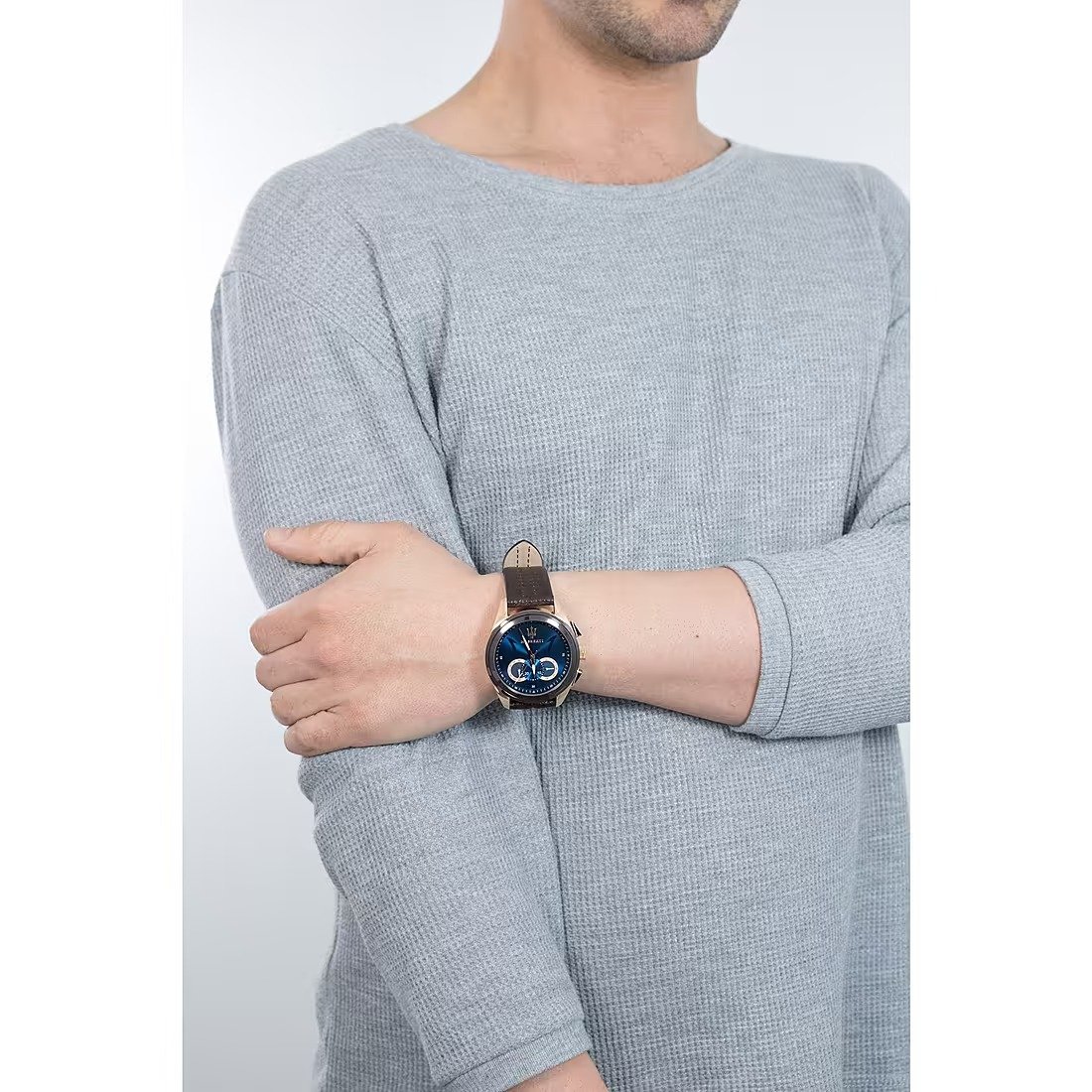 ساعة مازيراتي Maserati للرجال أصلية موديل (تراجواردو) R8871612024 Traguardo لون أسود و استيك جلد طبيعي لون أسود.