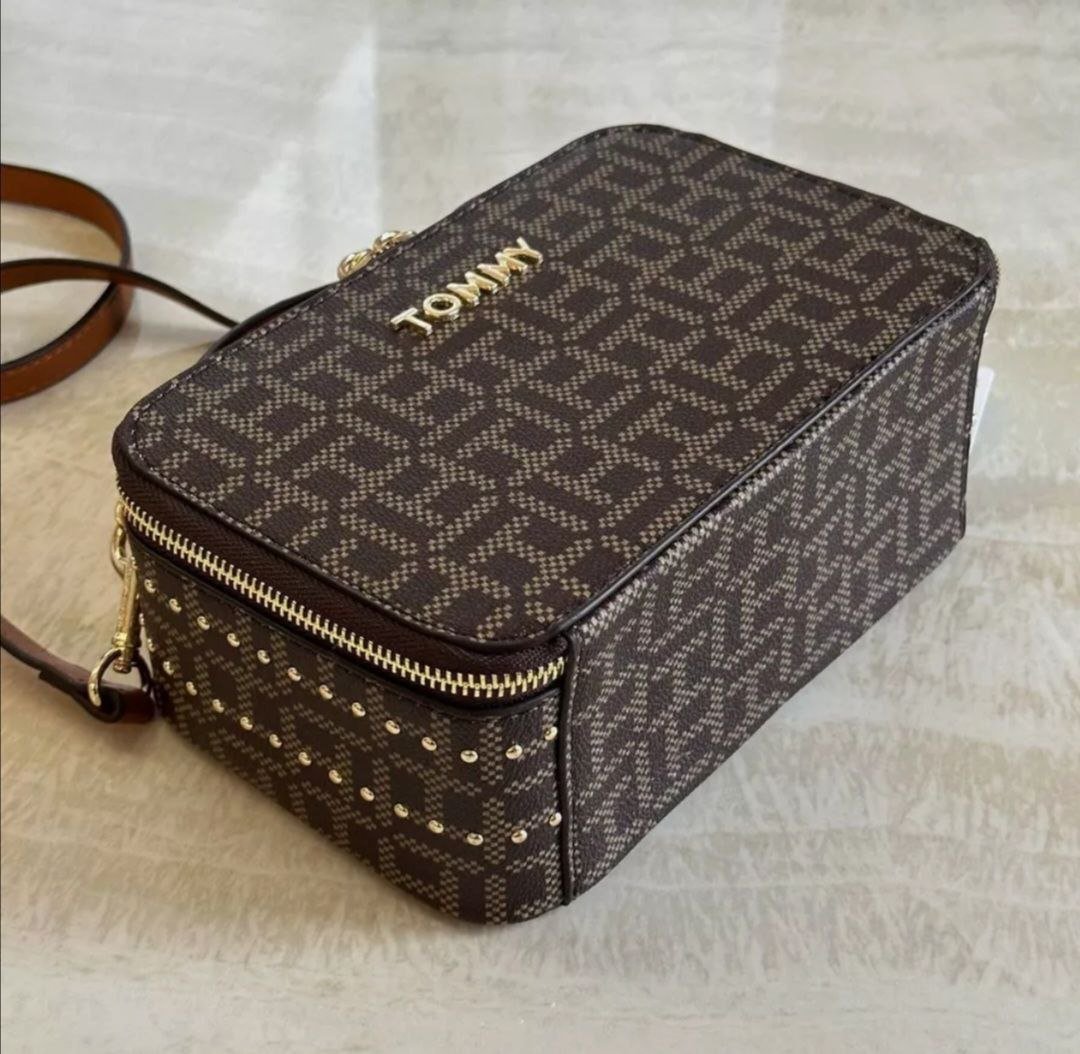 حقيبة كتف تومى هيلفيغر Tommy Hilfiger للنساء لون بني.