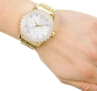 ساعة جيس Guess للنساء (أصلية) موديل Dazzler W0335L2 لون فضي و استيك معدن لون ذهبي.