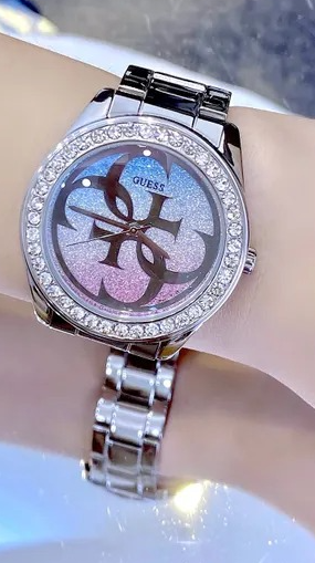 ساعة جيس Guess للنساء (أصلية) موديل W1201L1 متعددة الألوان و استيك معدن ستانلس لون فضي.