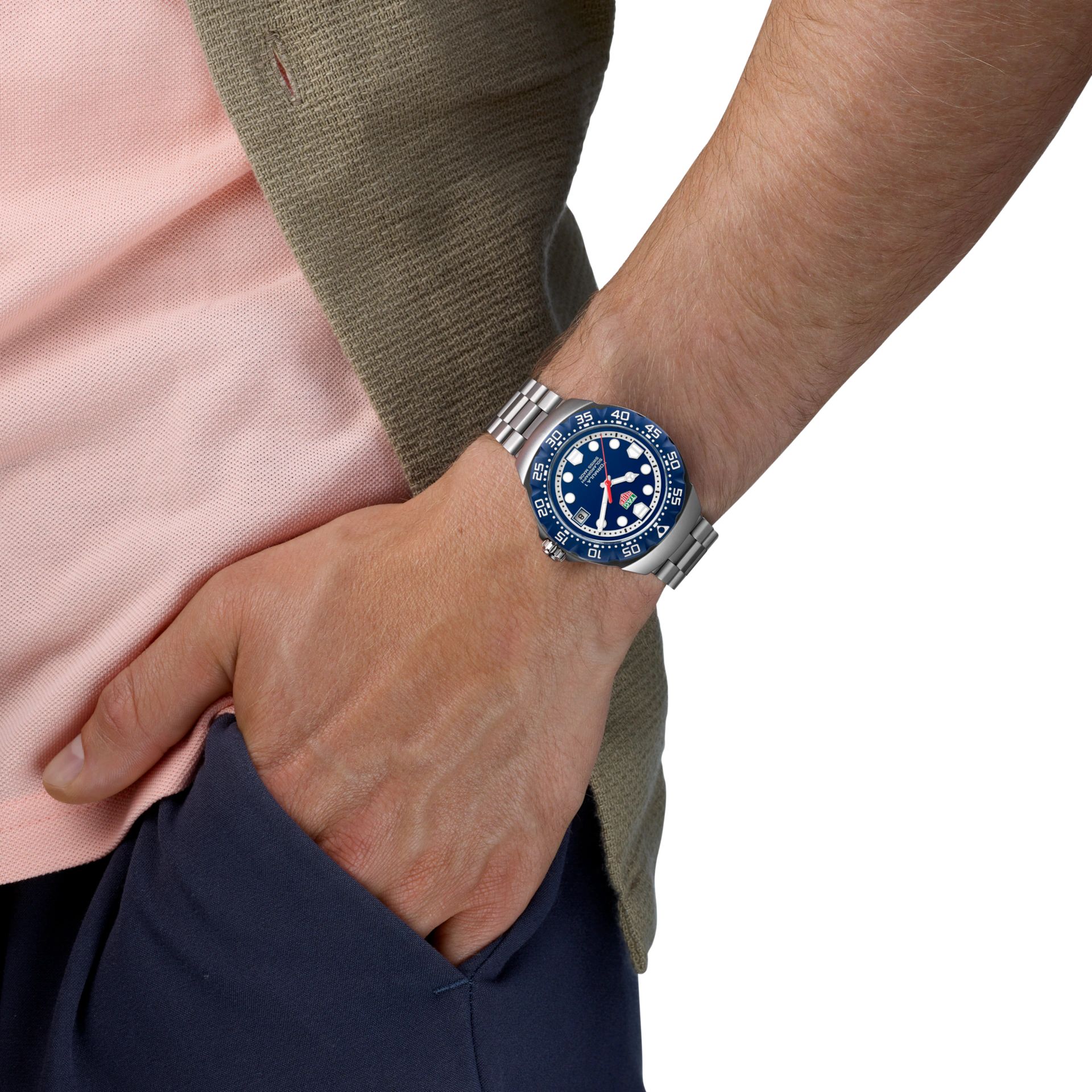 ساعة تاج هوير Tag Heuer للرجال (ميرور اوريجنال) موديل Formula 1 WBY1112.BA0042 لون أزرق و استيك معدن ستانلس لون فضي.